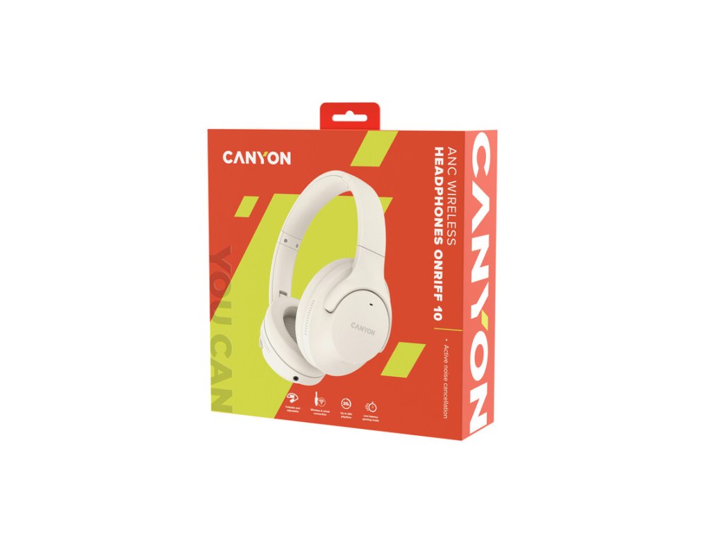 Canyon BTHS-10, OnRiff 10 Bluetooth bezdrôtové slúchadlá, ANC aktívne potláčanie hluku, USB-C nabíjanie, béžové