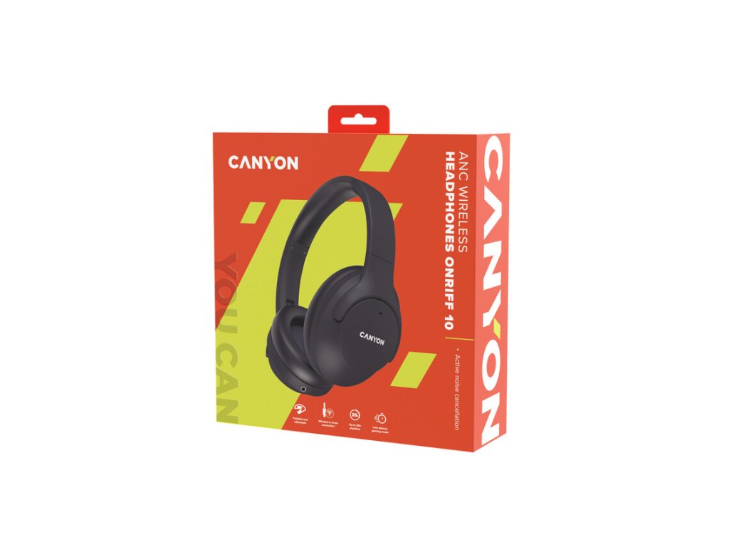 Canyon BTHS-10, OnRiff 10 Bluetooth bezdrôtové slúchadlá, ANC aktívne potláčanie hluku, USB-C nabíjanie, čierne
