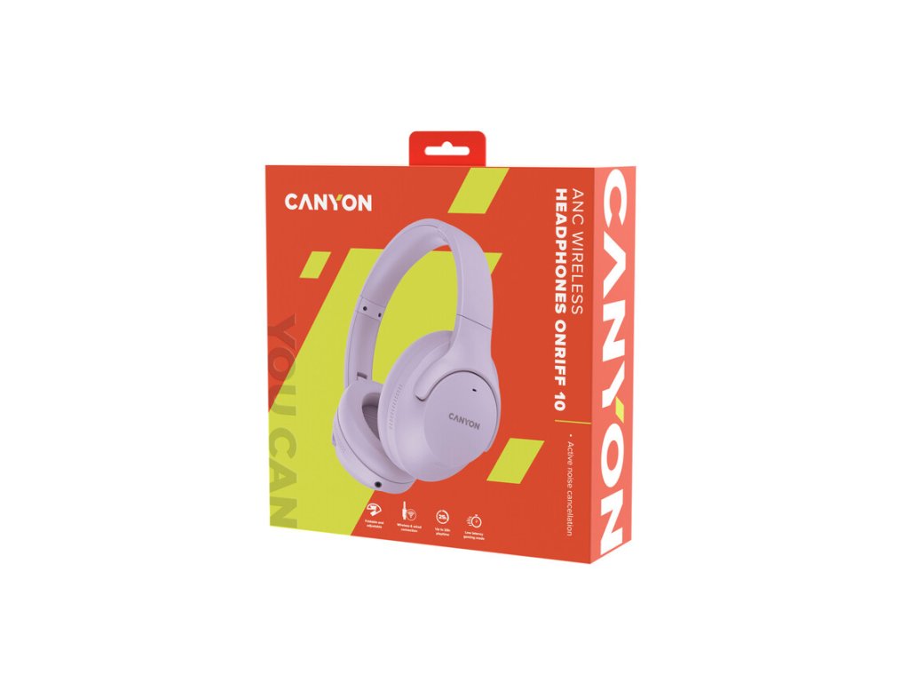 Canyon BTHS-10, OnRiff 10 Bluetooth bezdrôtové slúchadlá, ANC aktívne potláčanie hluku, USB-C nabíjanie, fialové