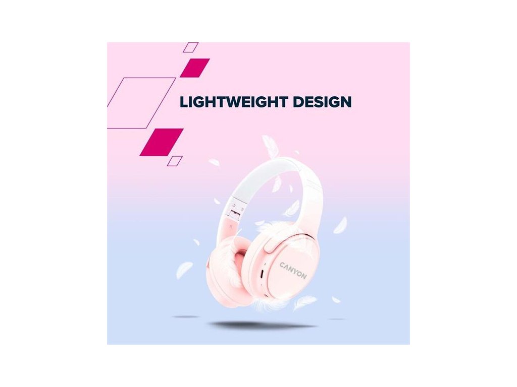 Canyon BTHS-4, OnRiff 4 Bluetooth bezdrôtové slúchadlá, 50 hod výdrž, skladacie, ružové