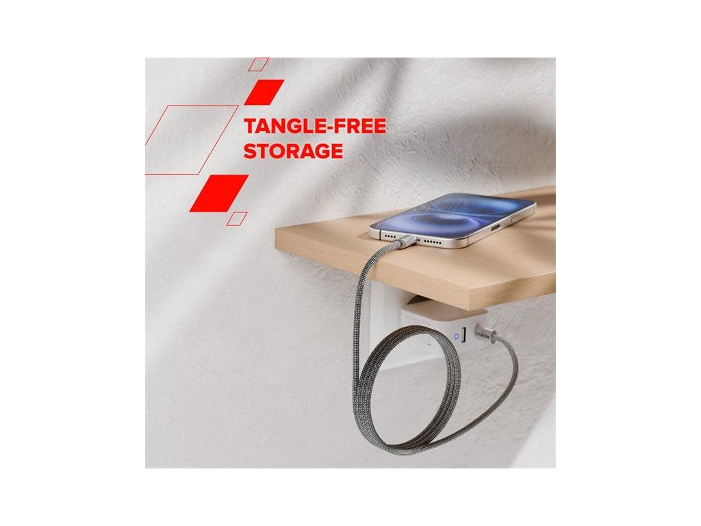 S dĺžkou 1 meter je dostatočne dlhý na pohodlie, ale nikdy vám nebude prekážať. Jednoducho počas nabíjania rozpleťte presne takú dĺžku, akú potrebujete a po skončení nabíjania si vychutnajte skladovanie bez neporiadku. Hoďte ho do tašky, úhľadne ho omotajte okolo nabíjačky alebo ho prichytite na kovový stôl.