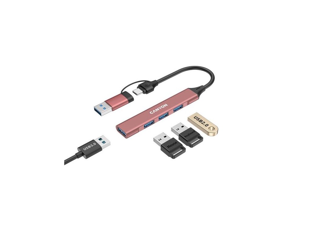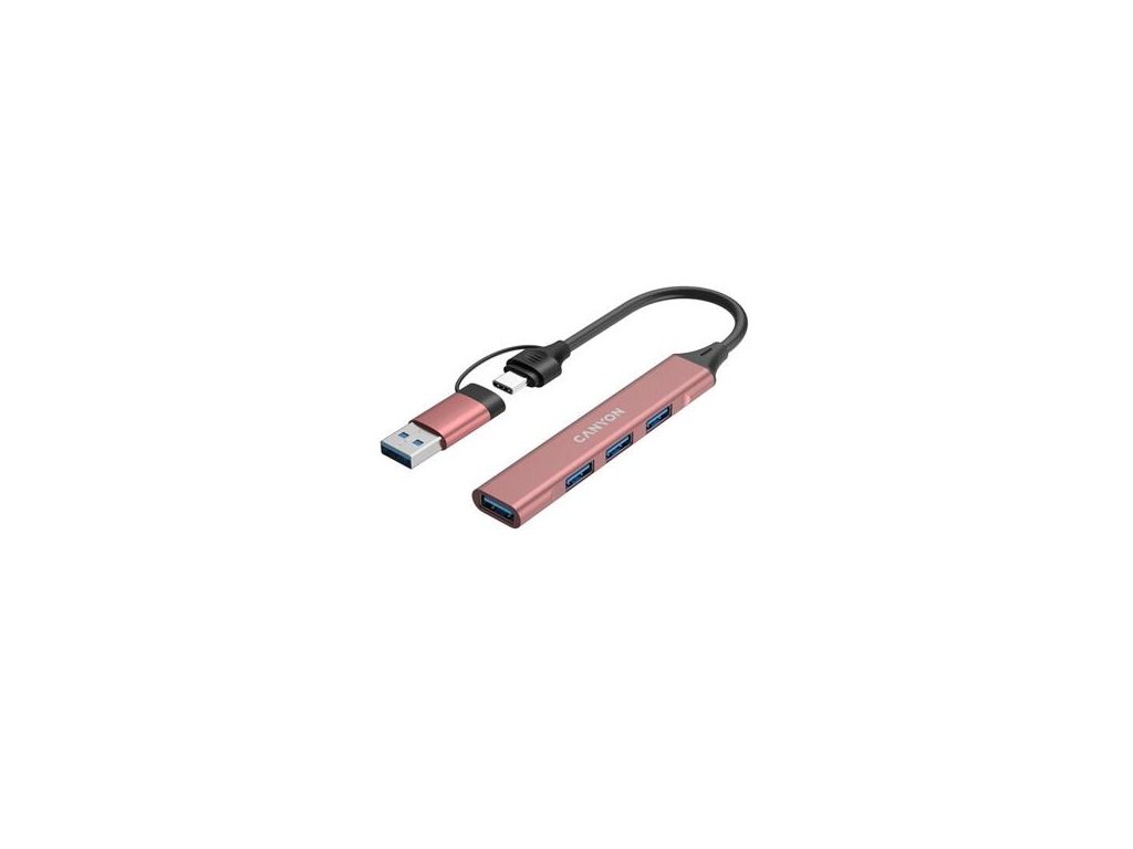 Canyon DS-02, USB-C Hub, 4 porty, 3xUSB 2.0 480Mbps, 1xUSB 3.0, 5Gbps, USB-C/USB-A adaptér, ružová