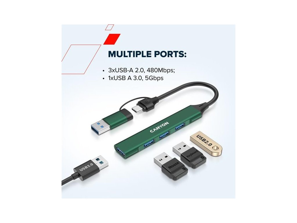 Nenechajte sa oklamať ultrakompaktnými rozmermi; tento rozbočovač toho poskytuje naozaj veľa. S 3 rozhraniami USB 2.0 pre každodenné potreby, ako sú klávesnice a myši, a portom USB 3.0 s rýchlosťou 5 Gb/s je ideálny na prenos veľkých súborov v priebehu chvíľky. Prečo čakať minúty, keď môžete čakať sekundy?