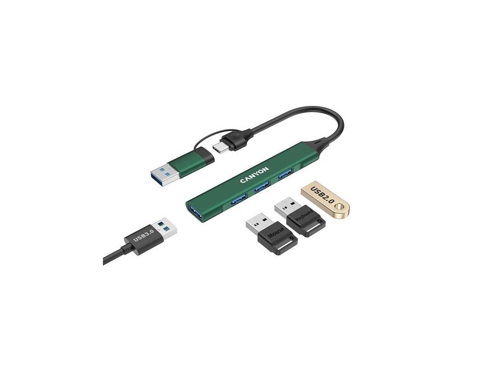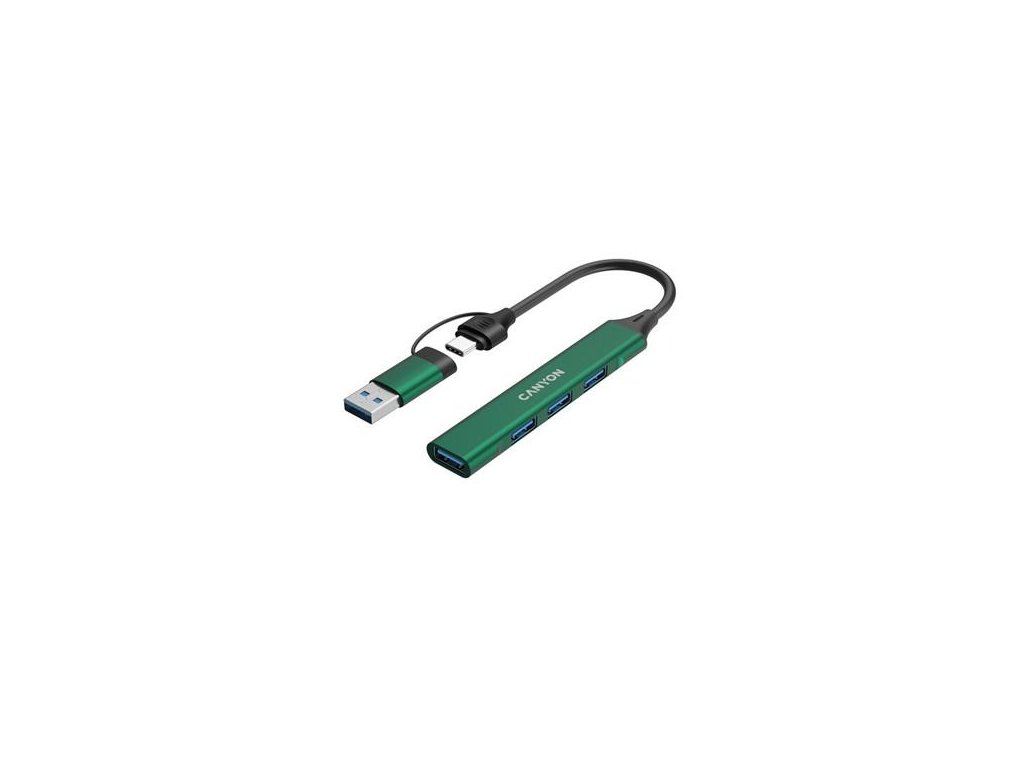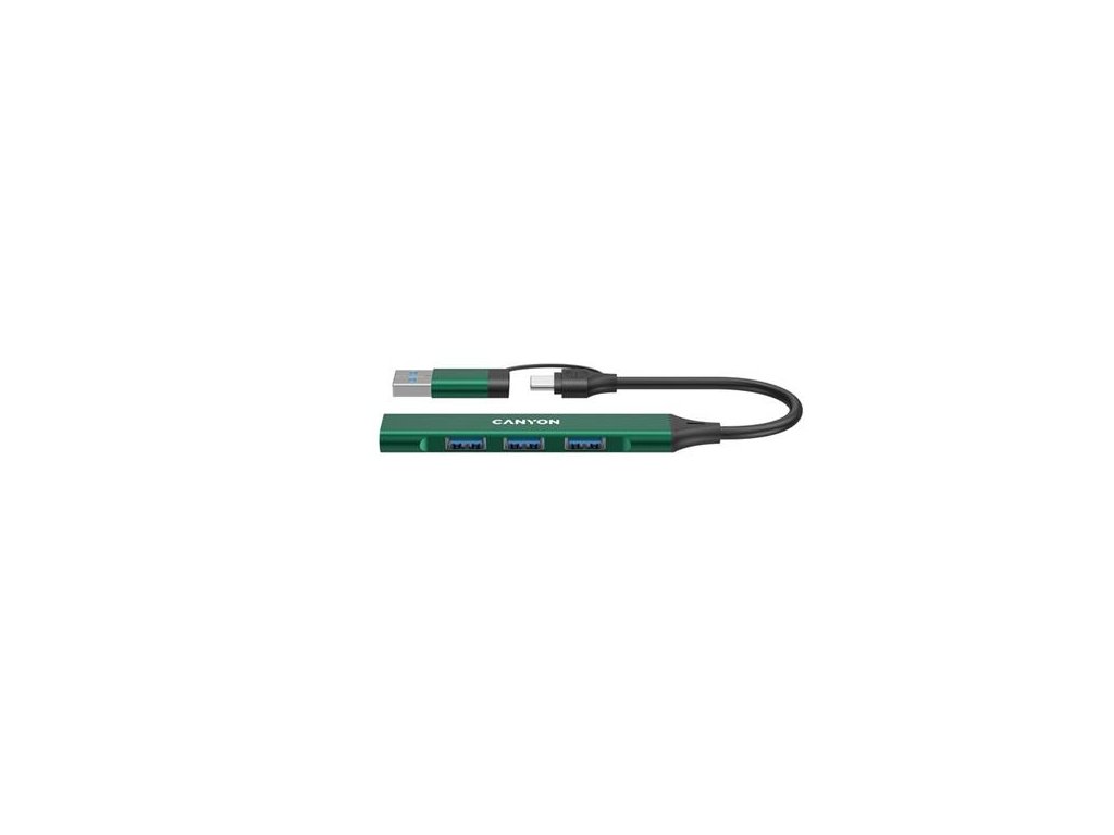 Canyon DS-02, USB-C Hub, 4 porty, 3xUSB 2.0 480Mbps, 1xUSB 3.0, 5Gbps, USB-C/USB-A adaptér, zelená