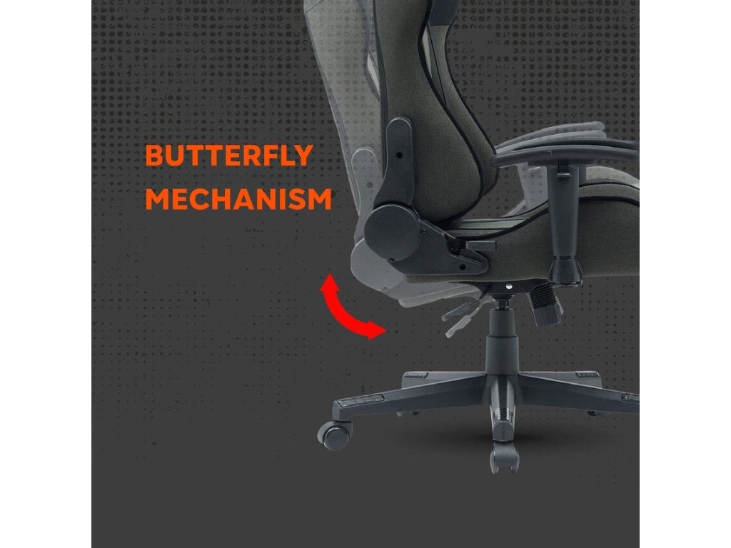 Poďme sa porozprávať o chrbtici a odolnom kovovom ráme. Táto stolička je odolná, skonštruovaná tak, aby uniesla až 150 kg a nikdy nevynechá ani jeden úder. Robustná, spoľahlivá a dostatočne pevná, aby vás udržala vo vzpriamenej polohe aj keď ste na hrane sedadla. Vďaka jej motýľovému mechanizmu získate plynulú, flexibilnú oporu, ktorá sa prispôsobí každému vášmu pohybu. Nastaviteľný uhol operadla sa pohybuje od 90° pre sústredenie, až po takmer vodorovných 180° pre nakláňanie.
