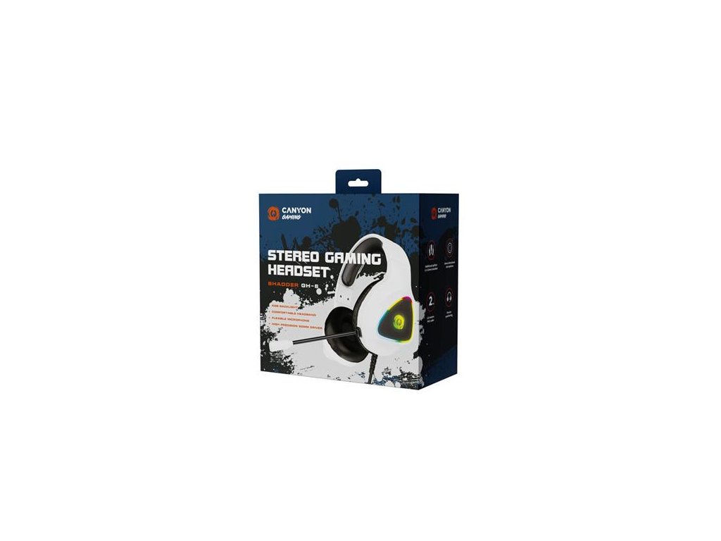 Canyon GH-6, Shadder herný headset, USB / 2x 3.5mm jack, 2m kábel, multicolor RGB podsvietenie, biely