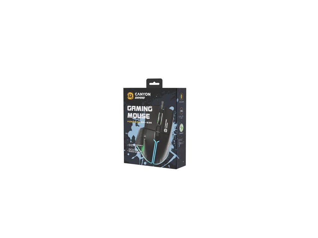 Canyon Fortnax, GM-636 herná myš, drôtová, optická, 20.000dpi, odozva 1ms, 9 progr. tlač, 6 režimov RGB podsv., čierna