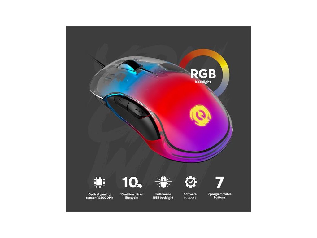 Staňte sa odvážnejšími s hernou myšou Canyon Braver. Vytvorená v priehľadnom kryštálovom dizajne, s gradientovým RGB podsvietením. Vyčnievajte z davu. Jej rozlíšenie dosahuje neuveriteľných 12800 DPI - vďaka senzoru Instant 825 a Huano prepínačom poskytuje životný cyklus neuveriteľných 10 miliónov kliknutí pre ľavé a pravé tlačidlá myši. Keď už hovoríme o tlačidlách, je ich sedem programovateľných a navyše môžete priraďovať makrá. Polling rate je možné nastaviť pomocou špeciálneho spínača. Čo viac môžete získať z hernej myši? Chyťte ju a rozpútajte hru!Vlastnosti / Špecifikácie