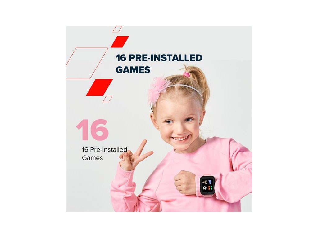 Tieto hodinky s veľkým a jasným 1,69'' displejom IPS a mimoriadne pohodlným nylonovým remienkom kombinujú štýl aj pohodlie a sú to pomôcky, ktorými sa vaše dieťa môže pochváliť. Keď hodiny odbíjajú "Nudím sa", 16 zabudovaných hier a MP3 prehrávač sú tu, aby zachránili situáciu. Má dokonca 512 MB pamäte, takže sa do nej zmestia obľúbené skladby vášho dieťaťa a ďalšie súbory.