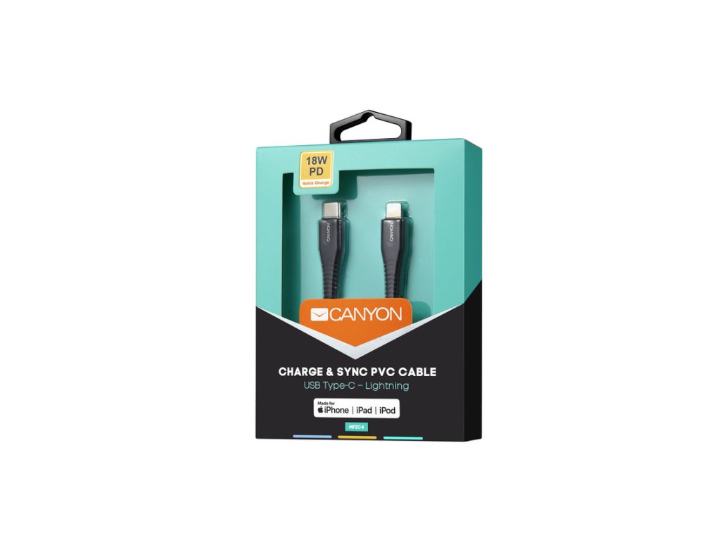 Canyon CNS-MFIC4B, 1.2m kábel USB-C / Lightning, 5V/2.4A, priemer 3.5mm, PVC, čiernyTento 1,2-metrový kábel certifikovaný spoločnosťou Apple je skvelým nástrojom pre majiteľov Macbookov "iba typu C".