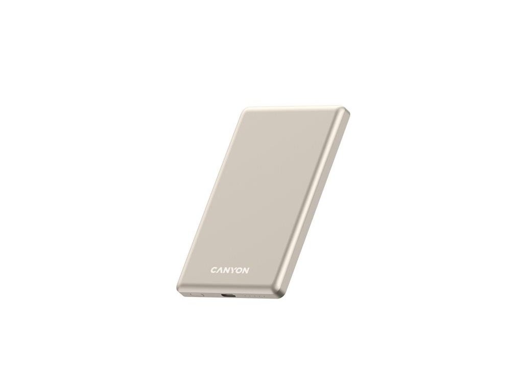 Canyon OnCharge 505, Powerbank, 5.000 mAh, in: USB-C, out: USB-C PD 20W + Wireless Magsafe 15W, ultratenká, béžová