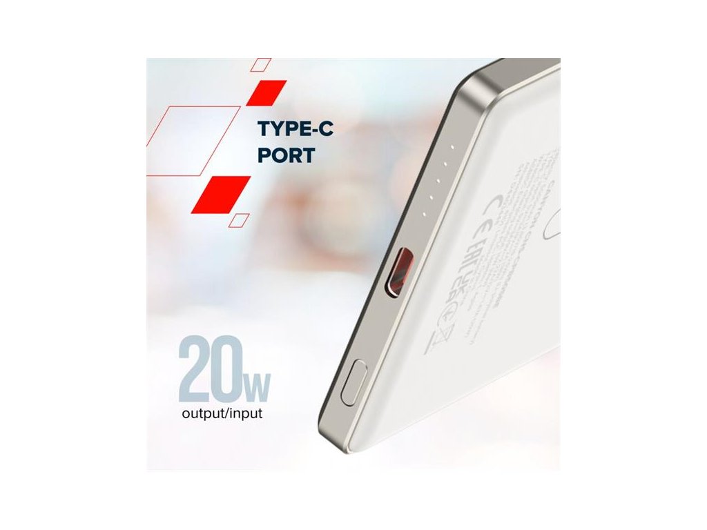 Canyon OnCharge 505, Powerbank, 5.000 mAh, in: USB-C, out: USB-C PD 20W + Wireless Magsafe 15W, ultratenká, šedá