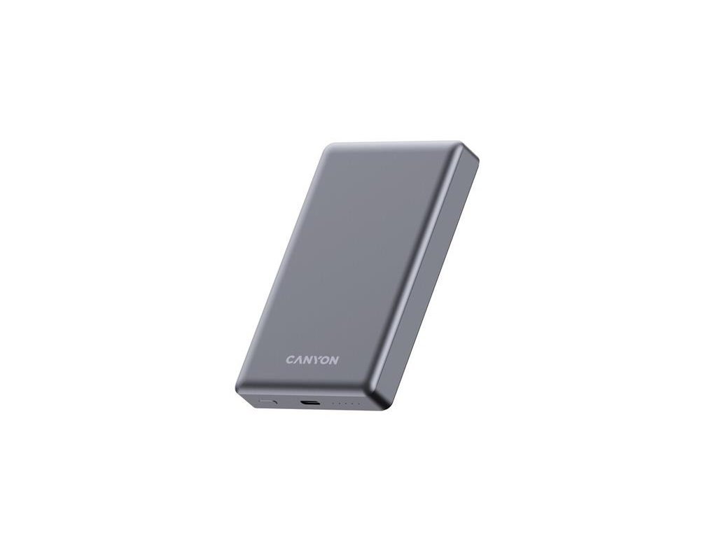Canyon OnCharge 510, Powerbank, 10.000 mAh, in: USB-C, out: USB-C PD 20W + Wireless Magnet 15W, štíhla, šedá