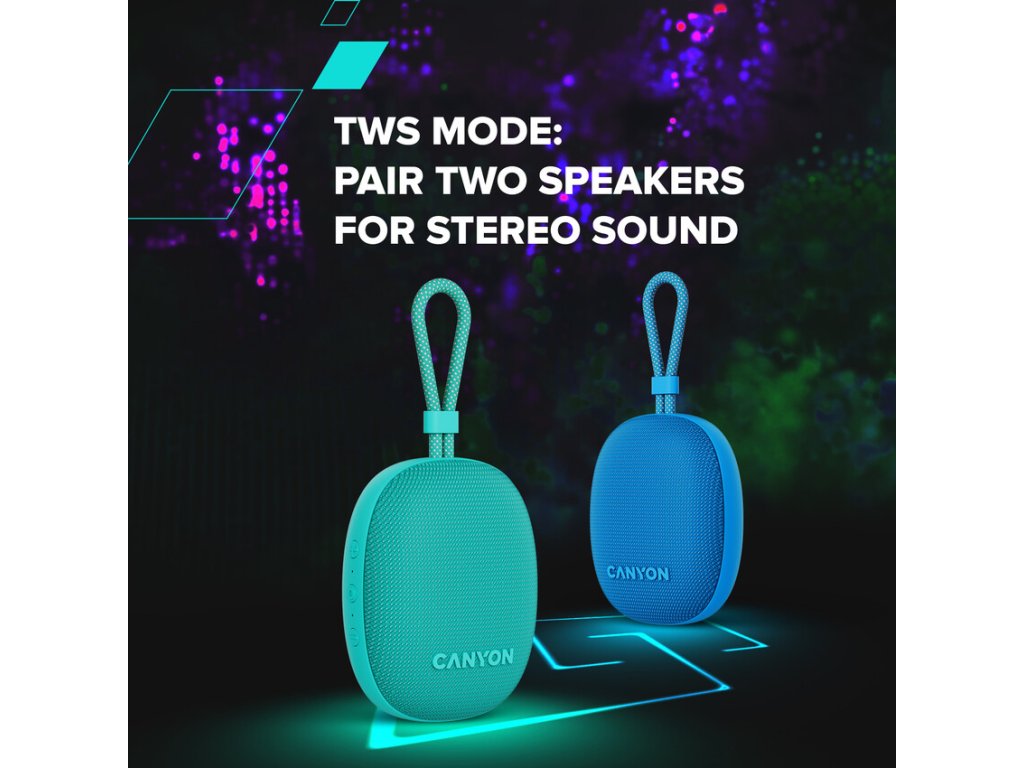 Canyon OnMove 12, prenosný Bluetooth v5.3 reproduktor, 5W, TWS, IPX7, 12 hod, USB-C nab.,modrý