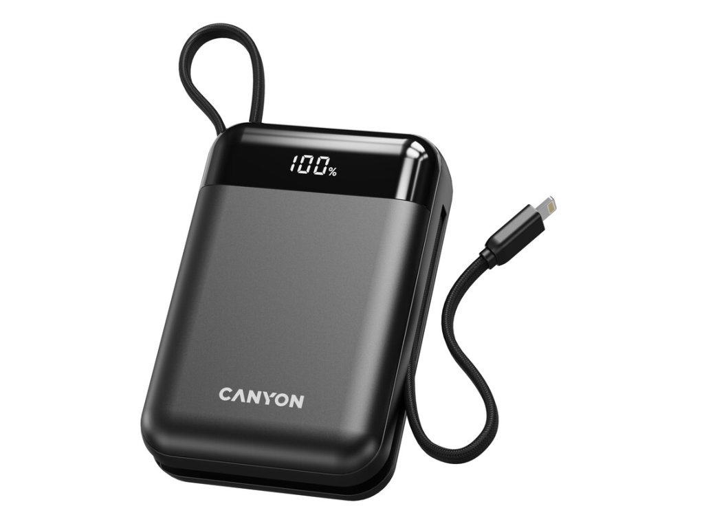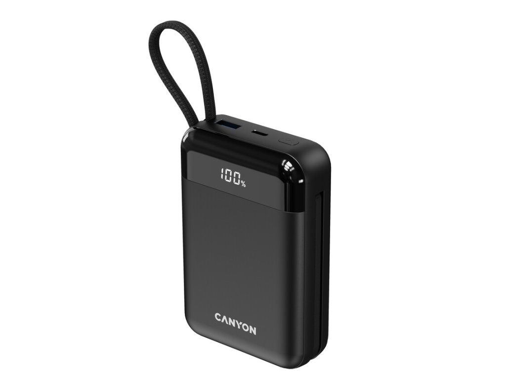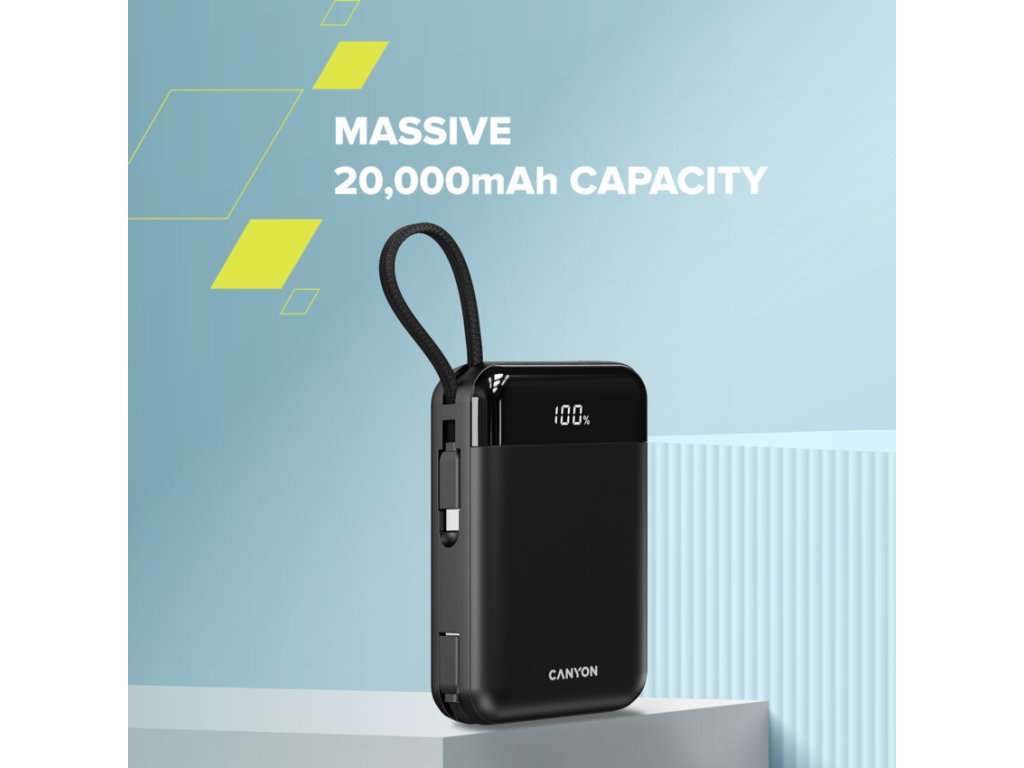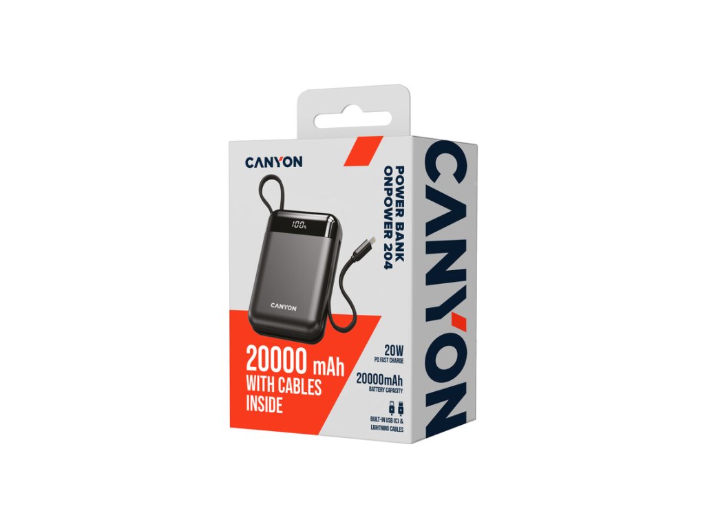 Canyon OnPower 204, Powerbanka, 20 000 mAh, 22.5 W, in/out: USB-C/USB-A, integr. káb. Ligtning+USB-C