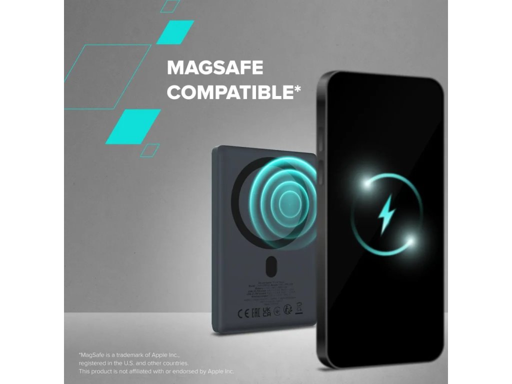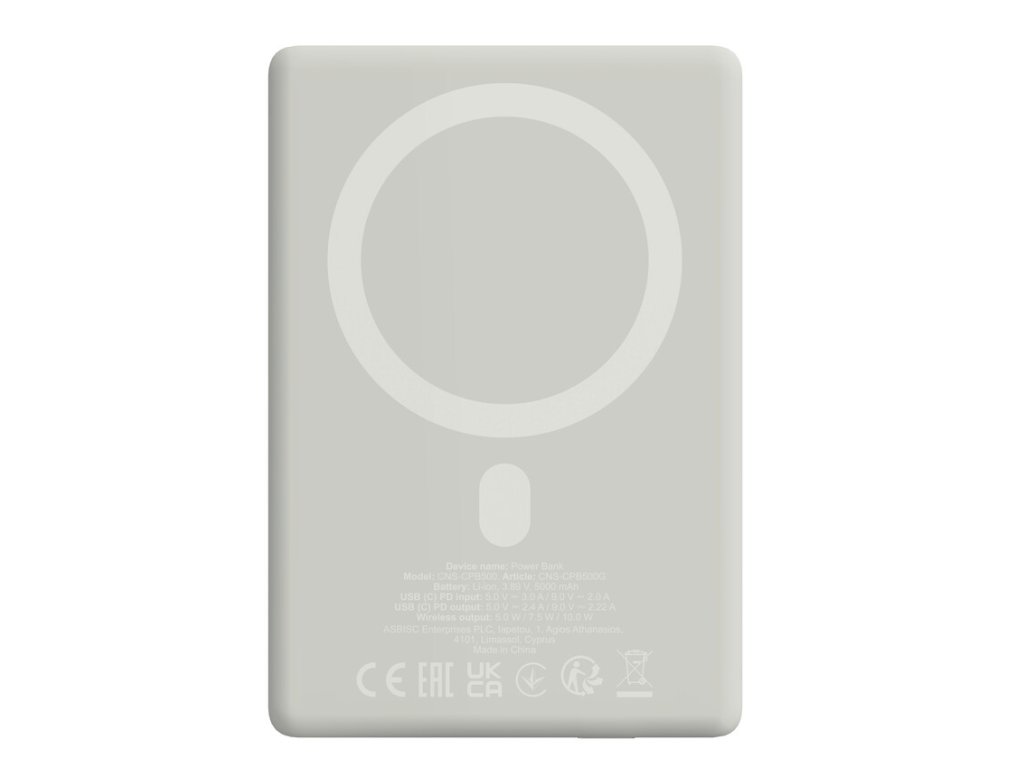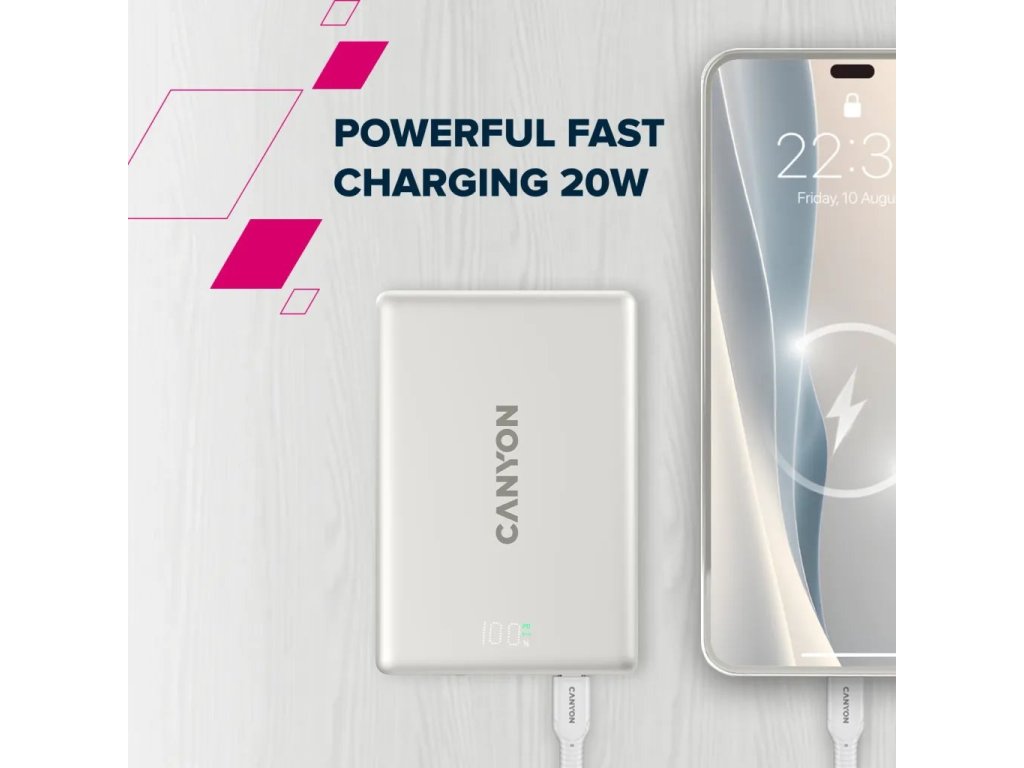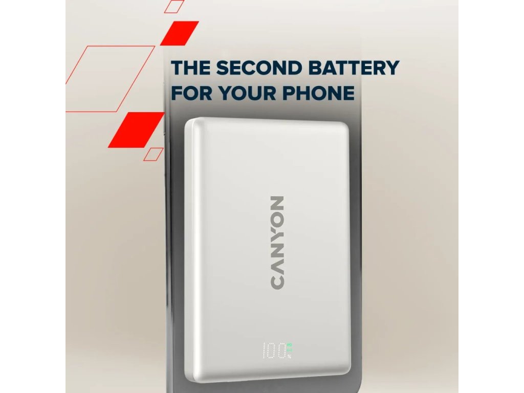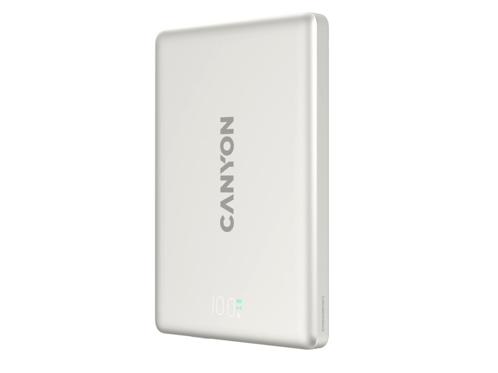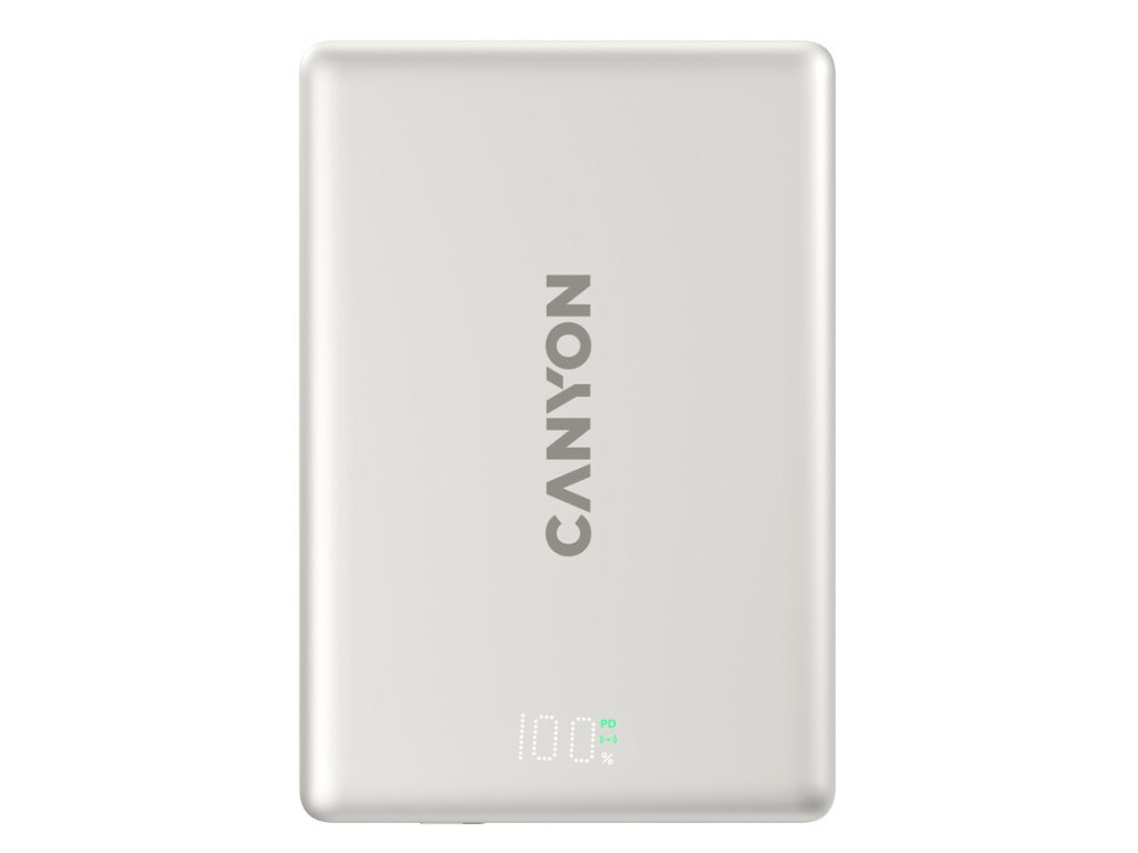 Canyon OnPower 500, Powerbank, 5.000 mAh, MagSafe, 20W USB-C, 15W Bezdrôtové nabíjanie, displej, šedá