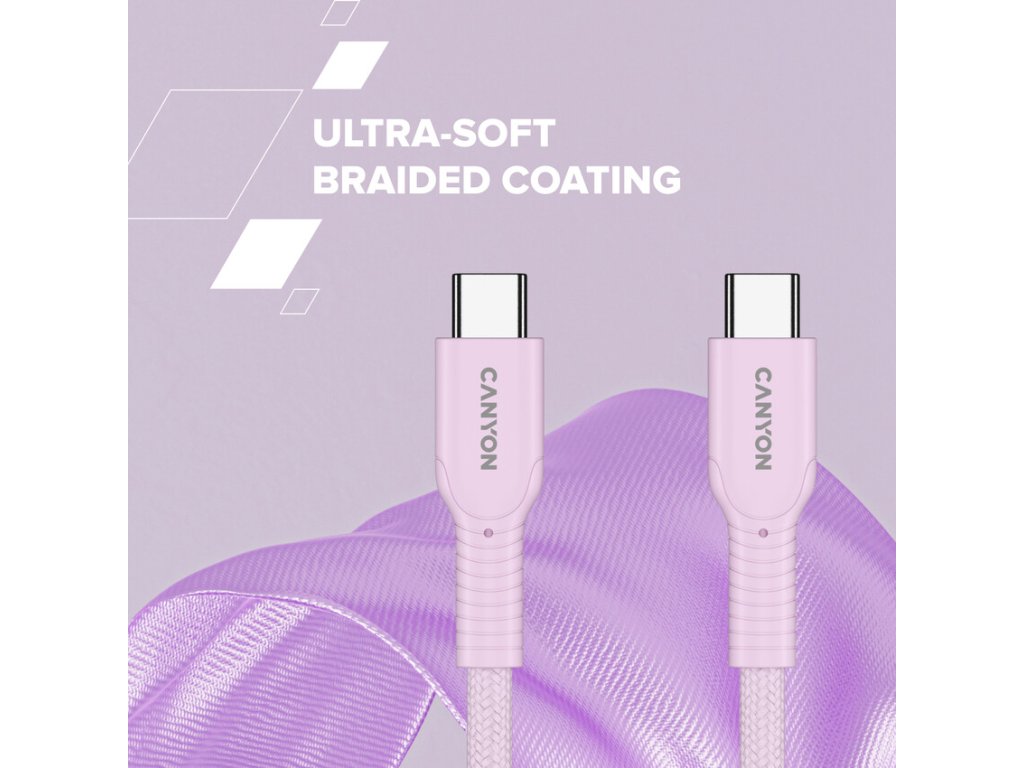 Canyon OnWire CCAP60CL, 1 m, kábel nab. a synchr., USB-C / USB-C, 60W PD, 480Mbps, opletený, čierny