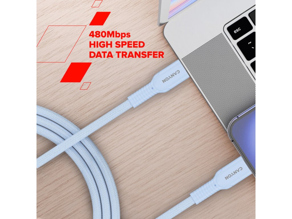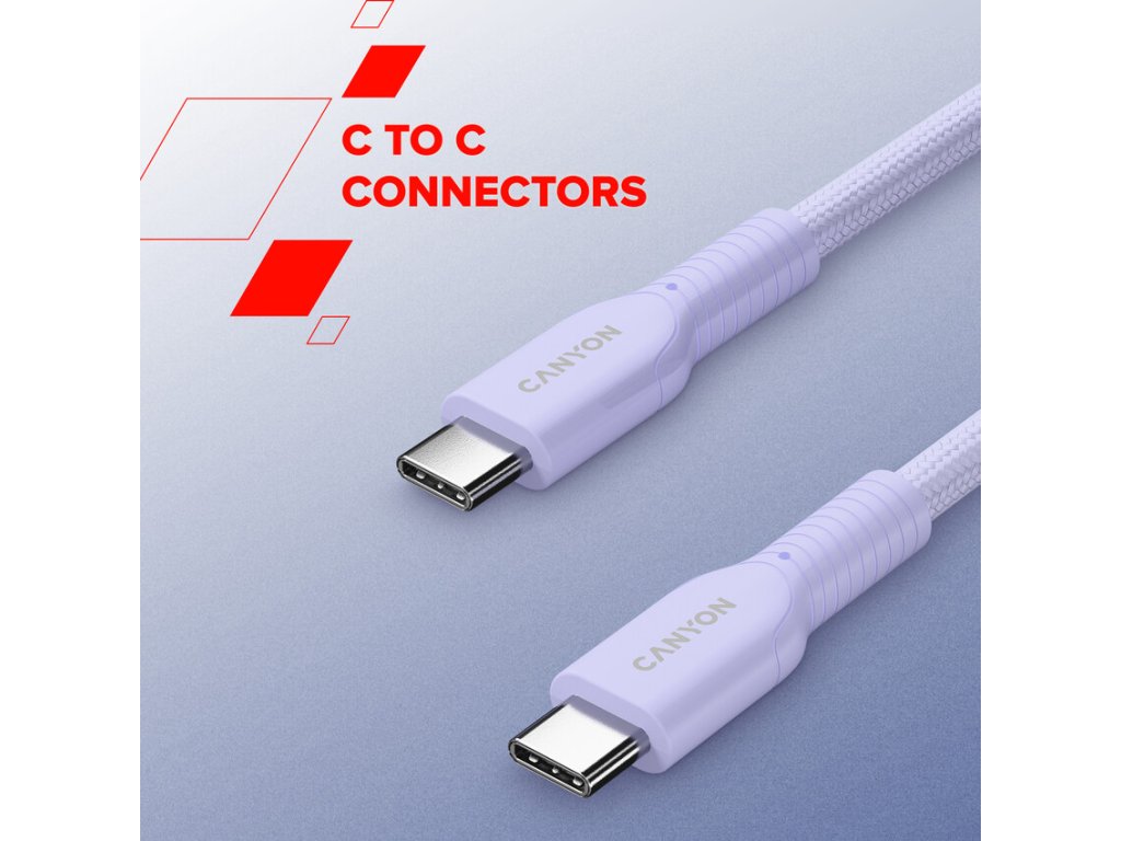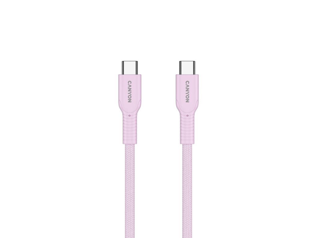 Canyon OnWire CCAP60CL, 1 m, kábel nab. a synchr., USB-C / USB-C, 60W PD, 480Mbps, opletený, ružový