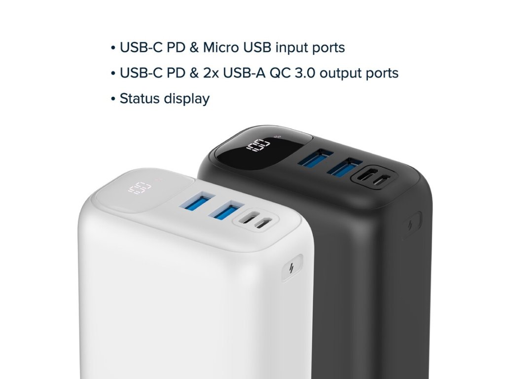 • výstupné porty: USB-C PD (Power Delivery) a 2x USB-A QC 3.0 (Quick Charge)