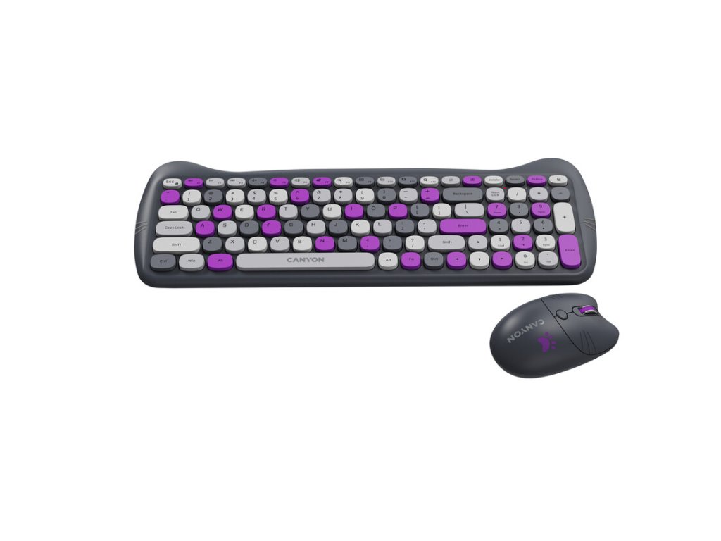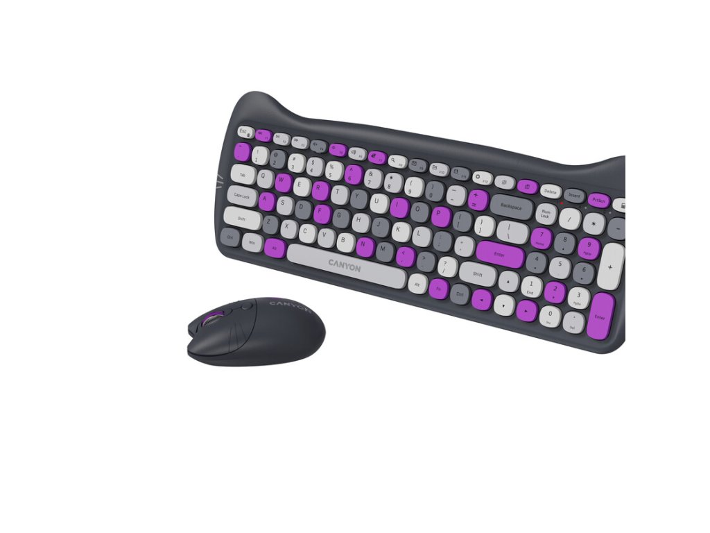 Canyon SET-W6, Kitty Edition, Wireless bezdrôtové combo - multimed. klávesnica, SK/CZ + opt. myš až 1600 dpi, fialová