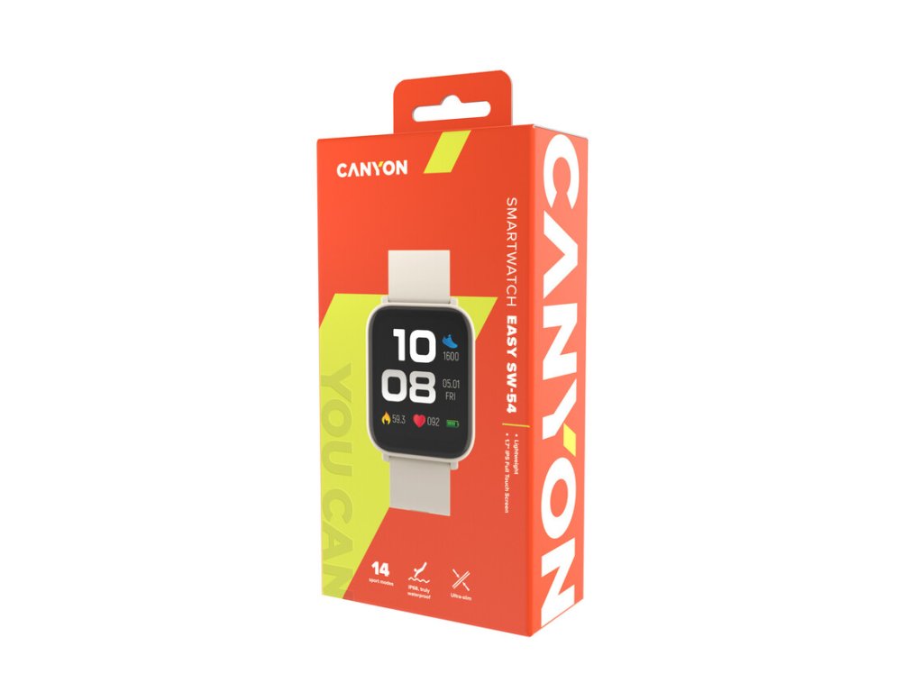 Canyon SW-54, Easy, smart hodinky, štíhle, BT s app Canyon Life, IP touchscreen 1.7´´, IP68, 14 športov, biele