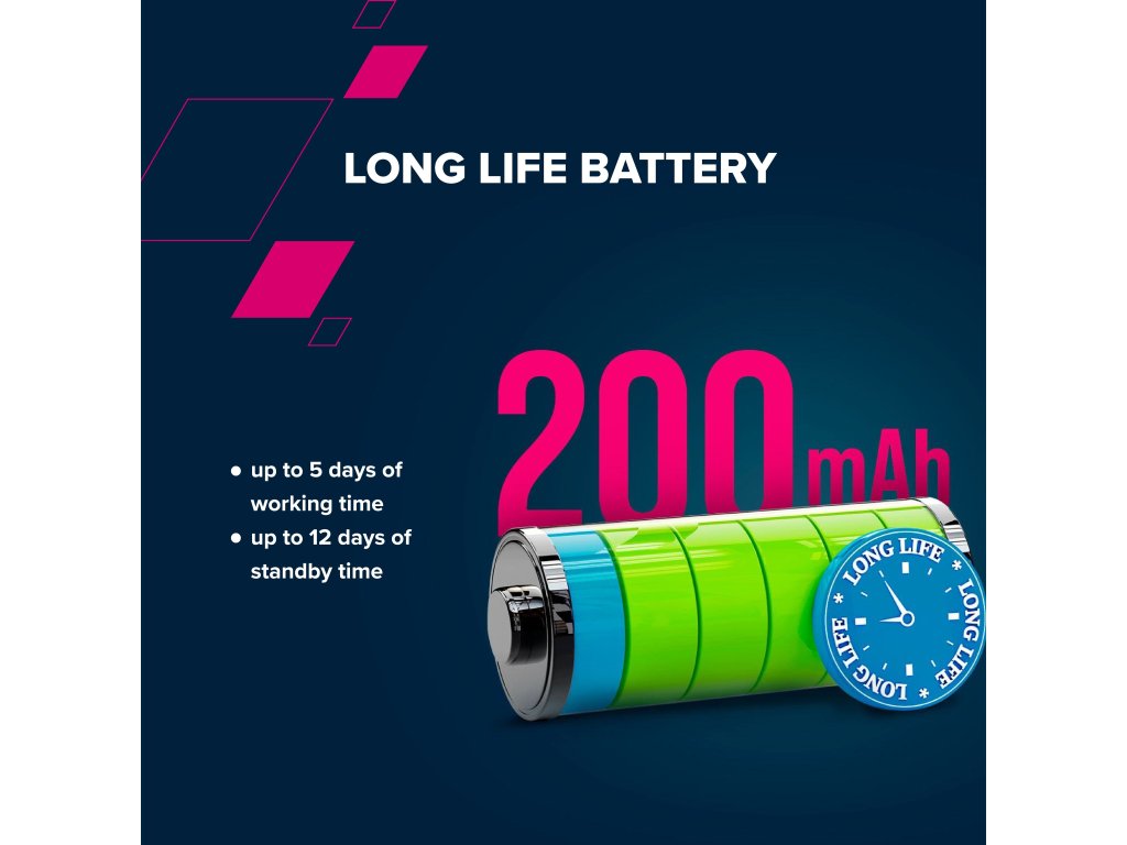 - vysoká kapacita batérie a dlhá výdrž v aktívnom režime až do 5 dní