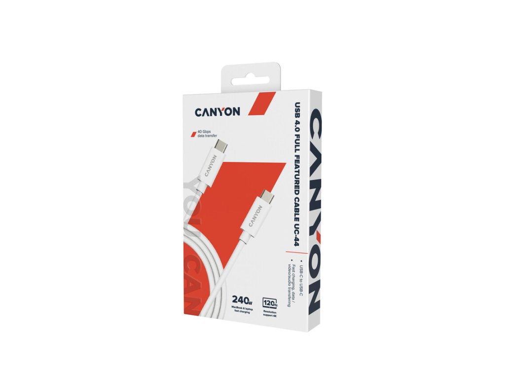 Canyon UC-44, 1 m kábel USB-C / USB-C, 48V/5A, výkon 240W EPR, 400GBPS, pre notebooky, E-mark čip, biely