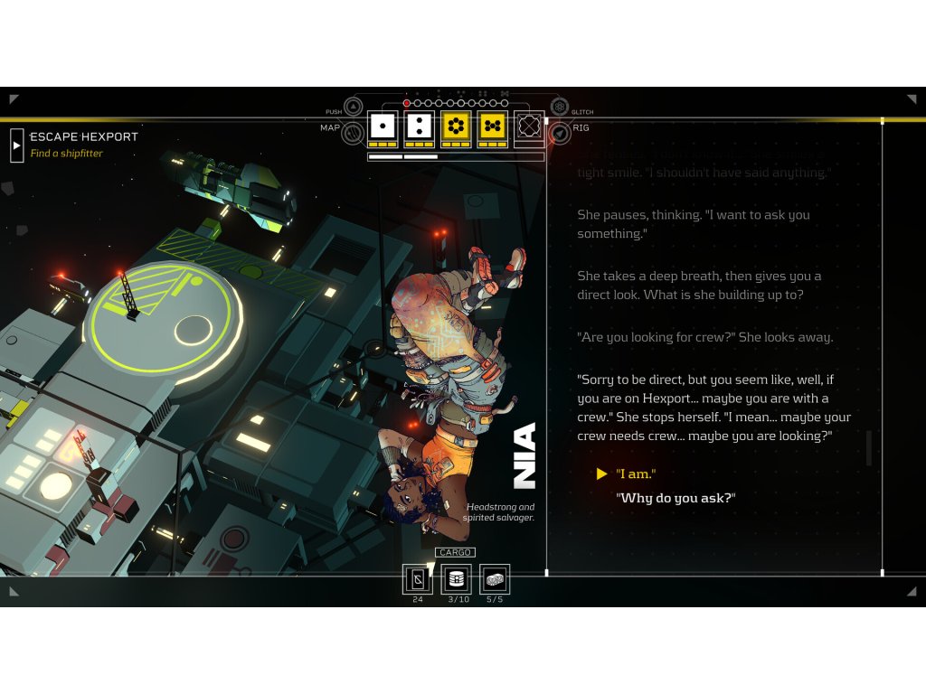 You are a sleeper, an emulation of a human mind housed in an artificial body. You are on the run from the corporation that made you and the gang that seeks to control you. Commandeer a ship, build a network of crew and allies, and take on challenging contracts as you seek to build a future for yourself.