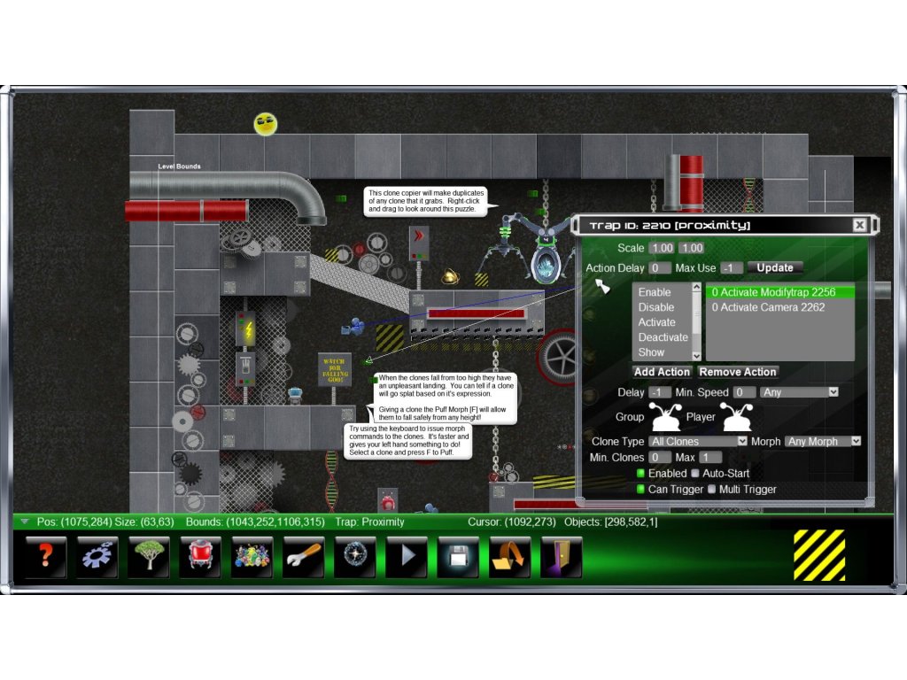 Clones is a friendly, fun, and engaging evolution to the classic Lemmings puzzle genre which includes robust internet-multiplayer with team play, different game modes, powerups, leaderboards, and a built-in level editor that was used to create the singleplayer campaign of over 150 clontastic puzzles spanning 11 CloneMaster bosses over 5 regions of the Clones Planet.
