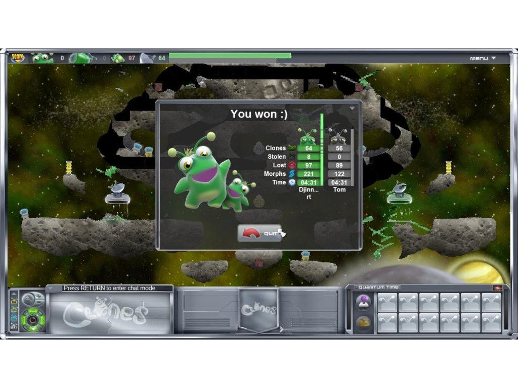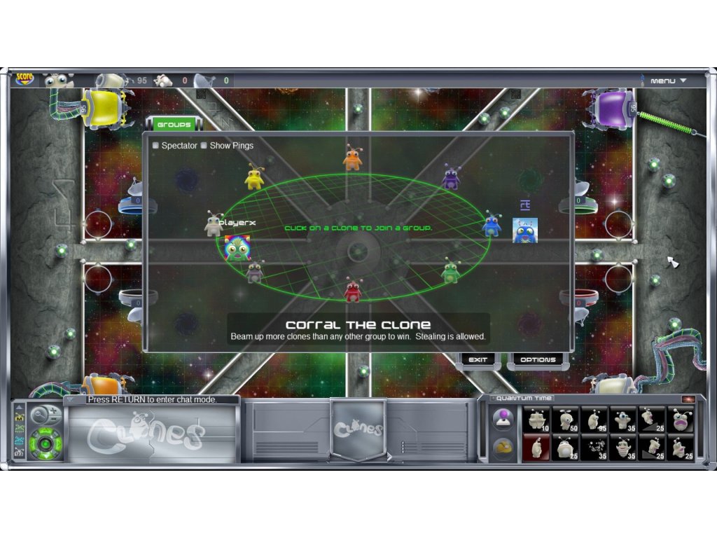 The Intergalactic CloneMaster Organization welcomes you! Take the scenic route and solve the fun and challenging problems crafted by the most cunning creatures in the universe. Then try the competitive route and test out your strategies head-to-head, in real-time, against other players from around the galaxy!