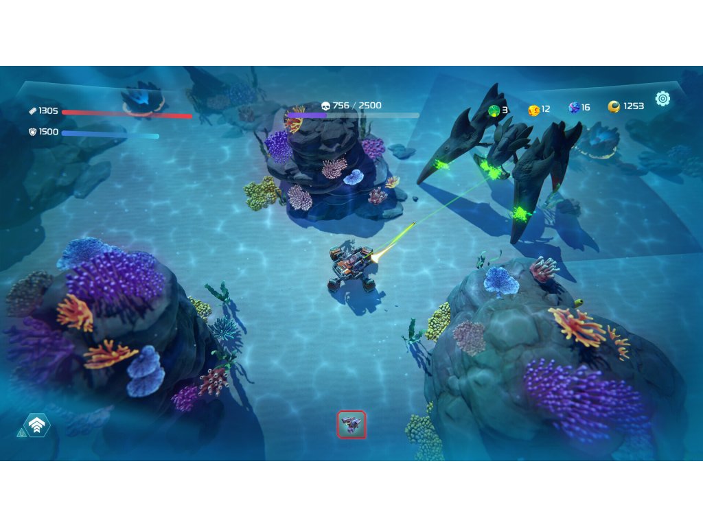 - Fight hordes of sea monsters under the energy dome, using a huge arsenal of weapons