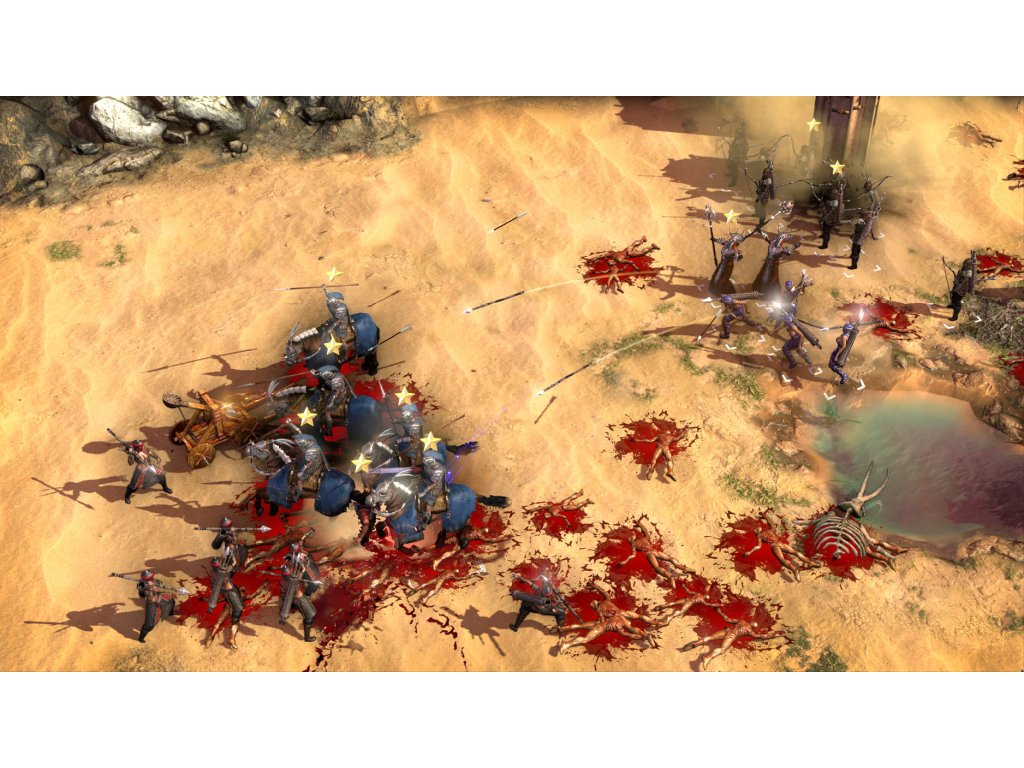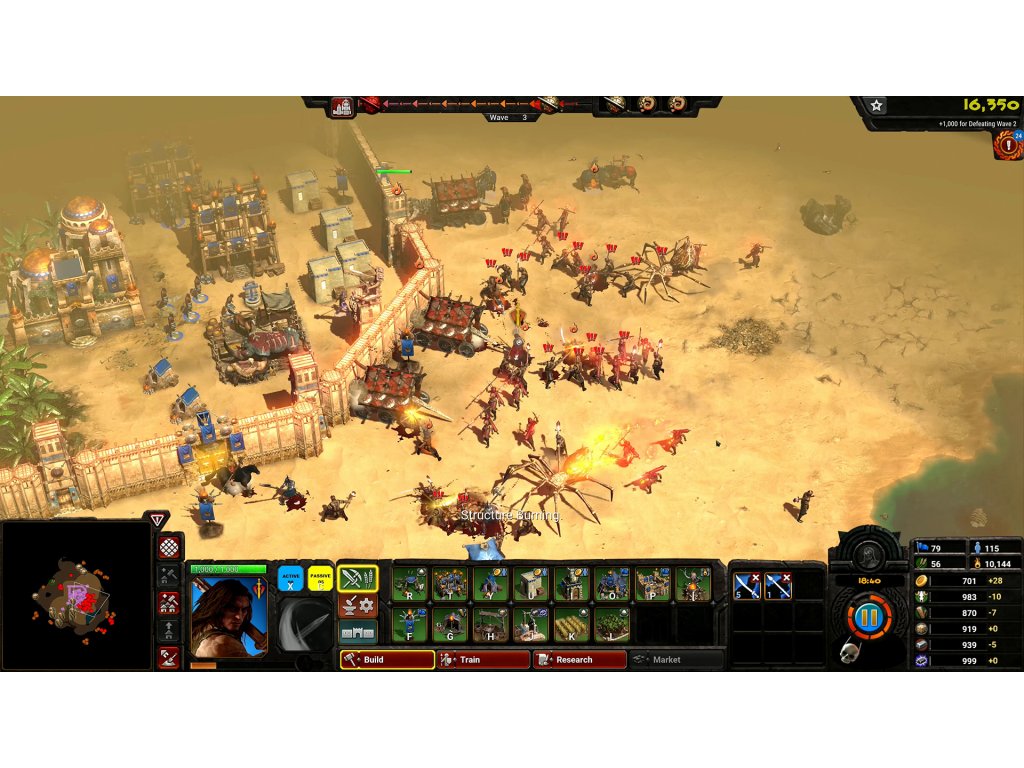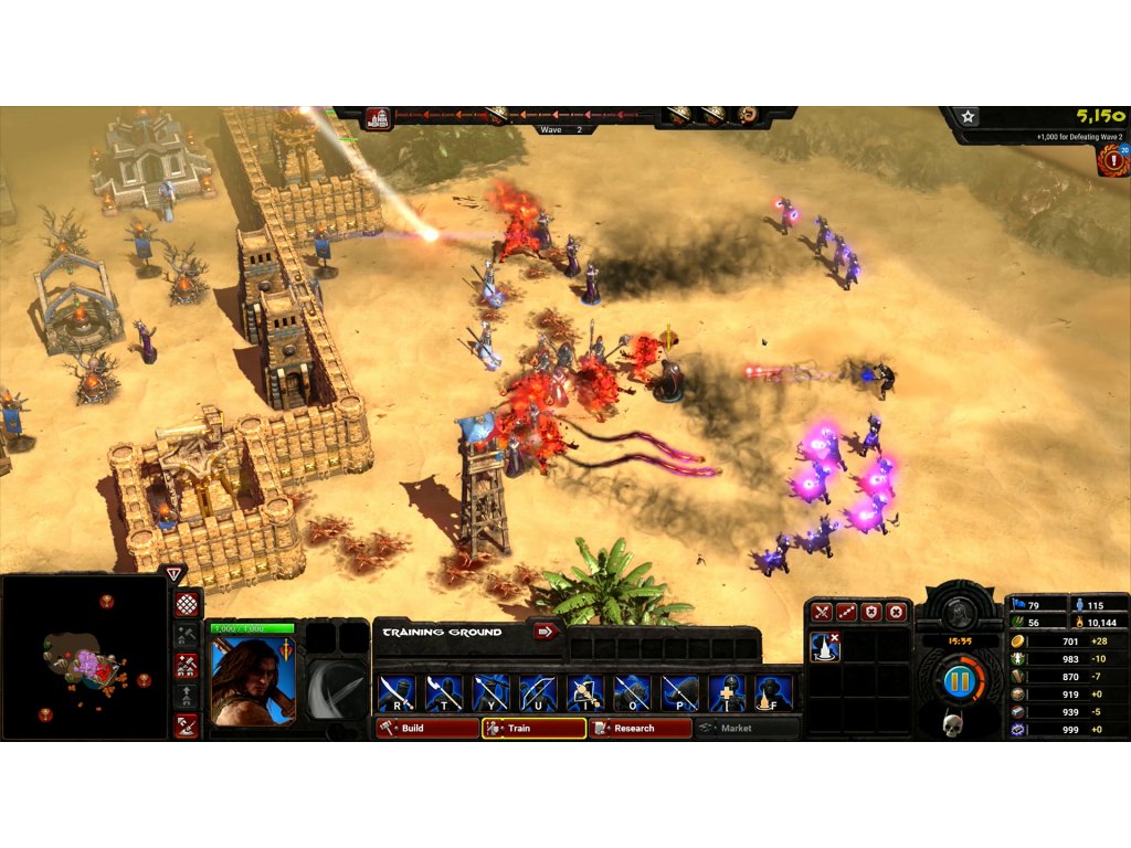 Conan Unconquered offers quite a unique gameplay experience. The game’s main mechanics are based on tried and tested RTS systems, such as gathering resources, building armies and upgrading the player’s stronghold. However, game introduces several novelties that significantly change the gameplay. One of these is the attacking horde itself. The invading forces are relentless and will assault the player at any point in the game. The hordes strength will increase with each attack, forcing the player to focus on upgrading their fortress’ defenses, creating better ground units and improving their strategies of survival against the hostiles.