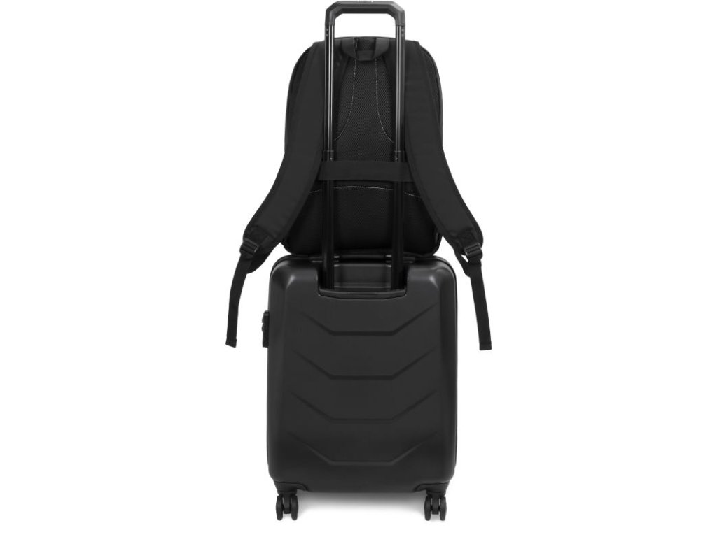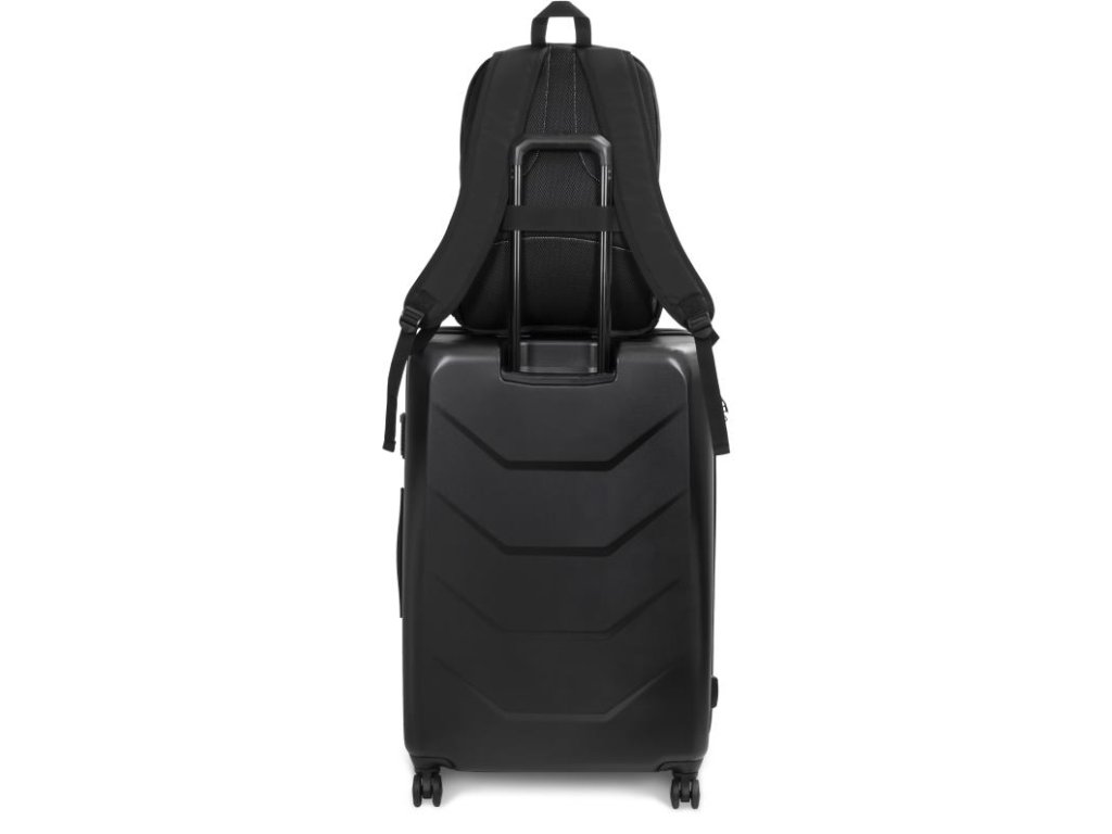 Pohodlné nosenie: Zosilnené a nastaviteľné popruhy sa prispôsobia vášmu chrbtu, zatiaľ čo horné pútko umožňuje jednoduché prenášanie. Navyše, batoh je vybavený návlekovým pásikom, ktorý ho môžete bezpečne pripevniť k rukoväti kufra, čo zaručuje komfortné cestovanie.