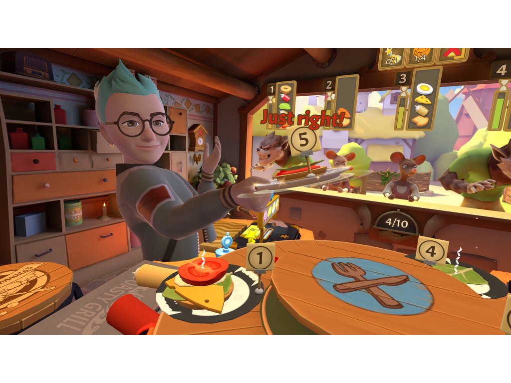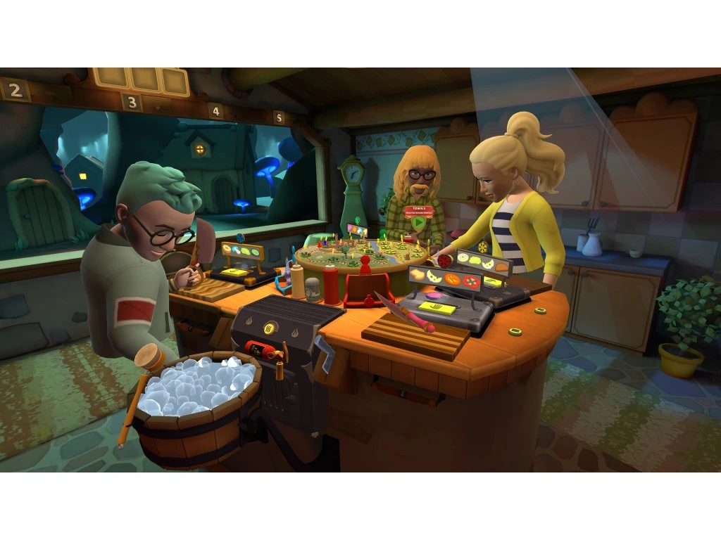 Notice: Requires a virtual reality headset.Set within the cook’s cabin of a fairytale forest, Cook-Out: A Sandwich Tale is a wacky and whimsical adventure - brought to you by the creators of Angry Birds VR: Isle of Pigs, Bait! and Blaston - that challenges up to four players to work together to keep the orders coming for a hungry cast of enchanted creatures in this multiplayer VR game.
