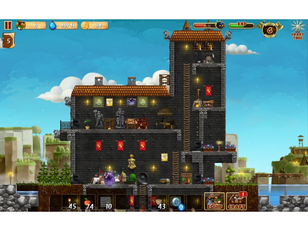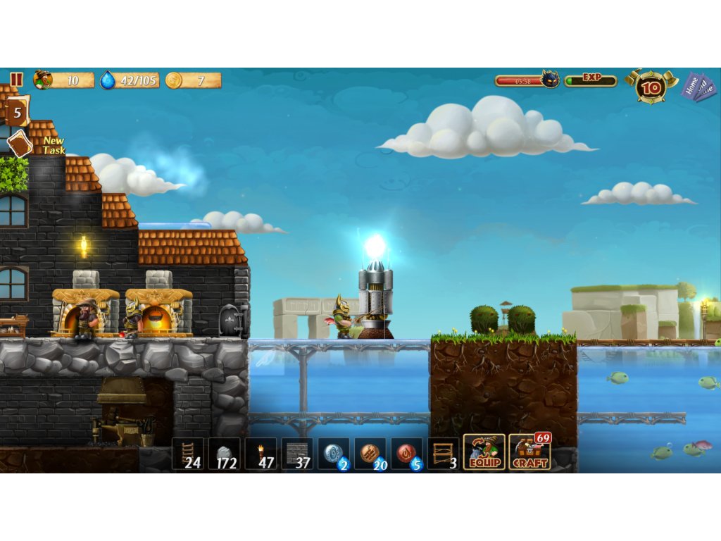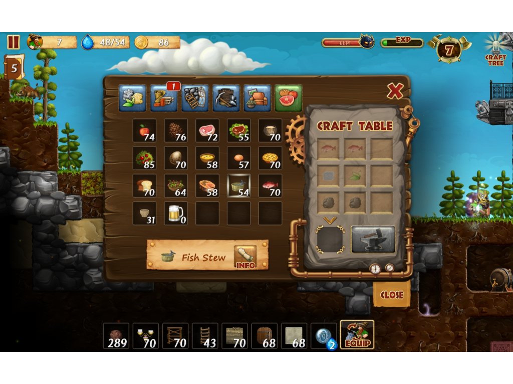 - CRAFTING - One feature of the game is a user-friendly system of recipes for crafting. The recipes are organized and easily accessible. You can craft dozens of different items: building blocks for houses, furniture, decorations, weapons, armor, ammunition, and food for your dwarves.