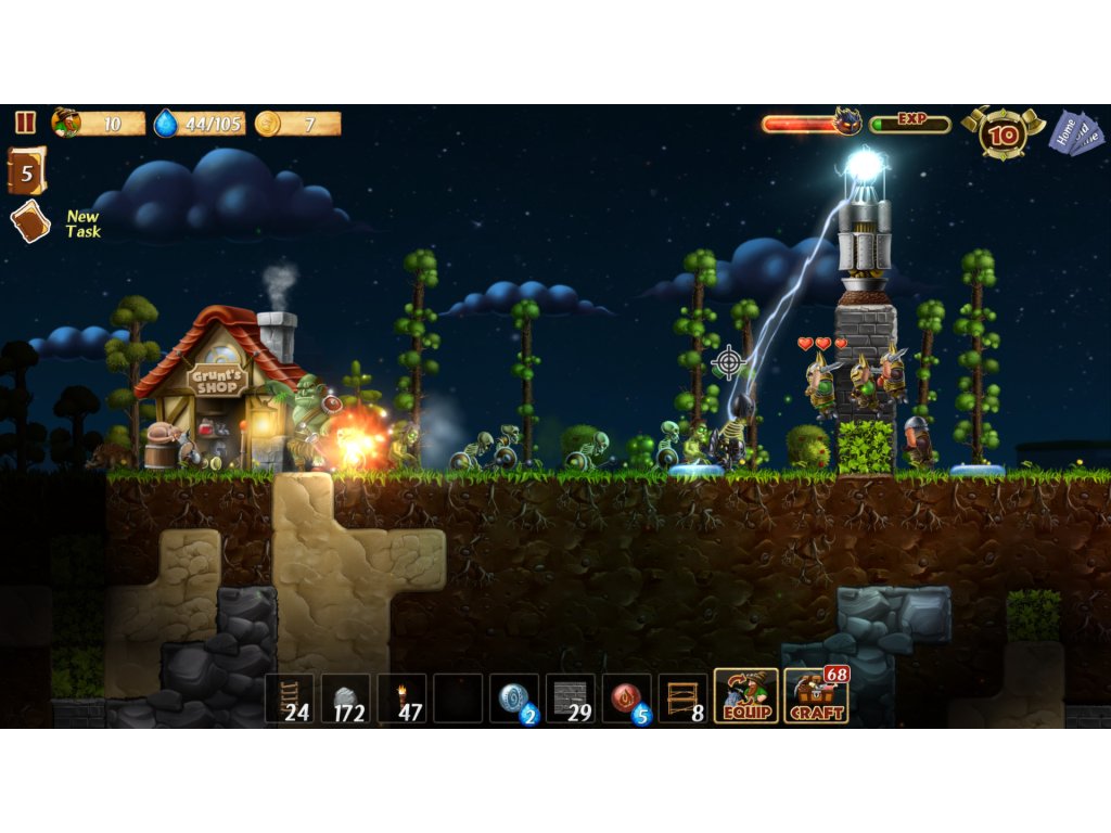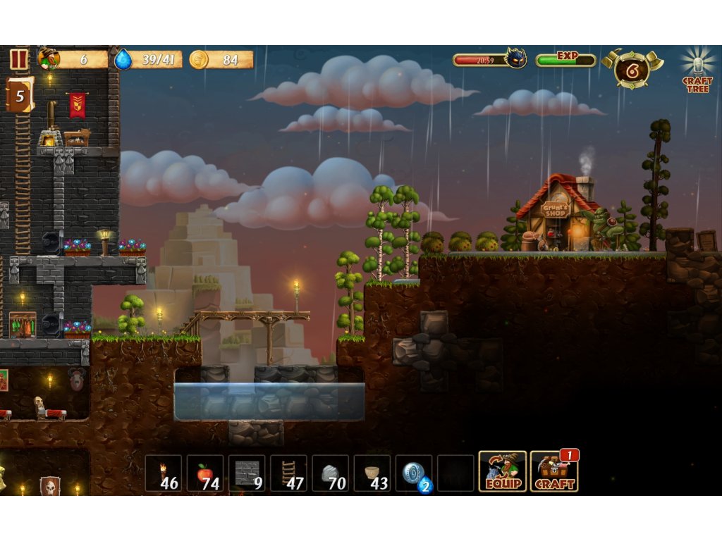 - SANDBOX GAME - Each game level has many layers of earth to explore, from the sky down to boiling subterranean lava. The level is randomly generated as an island, restricted by natural boundaries: oceans on the edges, lava beneath it, and the sky above. Other features include day and night and changing weather conditions. The worlds differ in size, humidity, temperature, terrain, and flora and fauna. Abandoned halls and rooms with treasure are hidden somewhere deep within the islands.