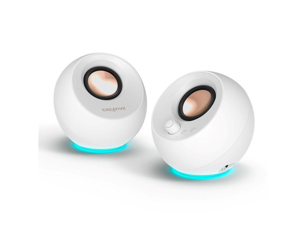 Teraz s nastaviteľným osvetlením RGB! Reproduktory Creative Pebble Pro umožňujú výber zo širokého spektra farieb a troch svetelných efektov pomocou jednoduchého nastavenia typu plug-and-play.