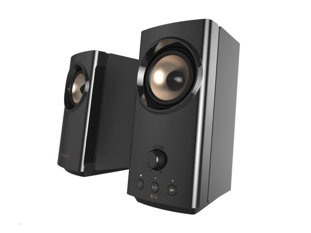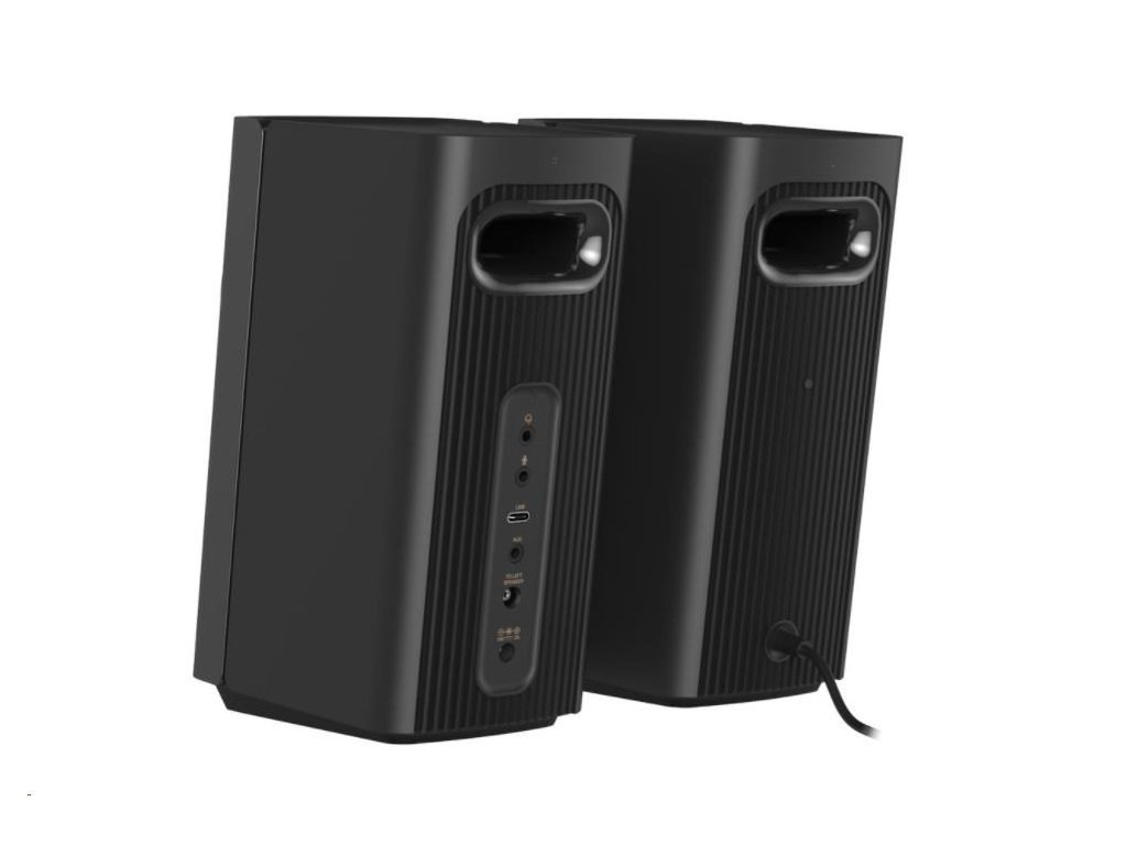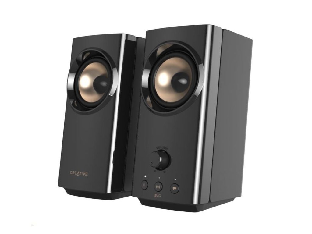 Kompaktné stolové reproduktory Hi-Fi 2.0 s funkciou Clear Dialog a Surround od spoločnosti Sound Blaster pre počítače a notebooky