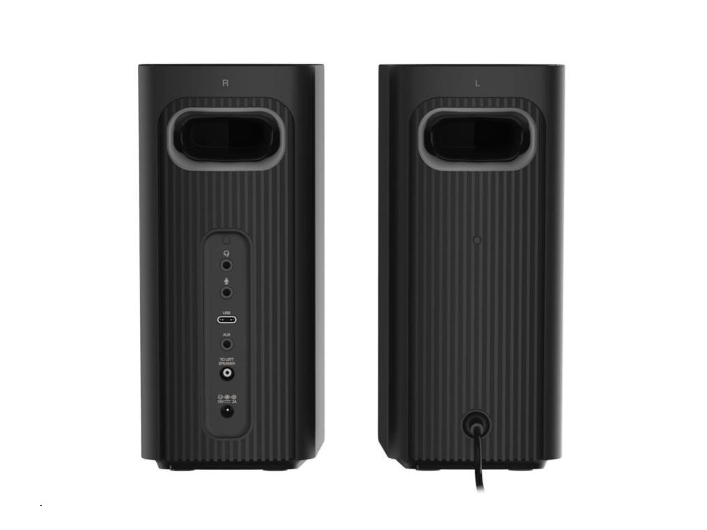 satelit: 2,0 m kábel pripojený k ľavému satelitu, kábel USB-C na USB-C (dĺžka kábla: 1,2 m), 3,5 mm stereo kábel na stereo (dĺžka kábla: 1,2 m)