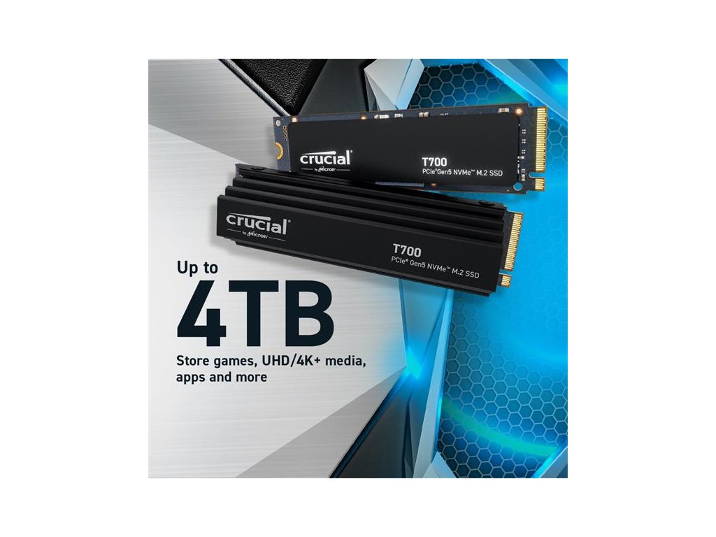 CRUCIAL T700 4TB PCIe Gen5 NVMe M.2 SSD (r12400MB/s, w11800MB/s)
