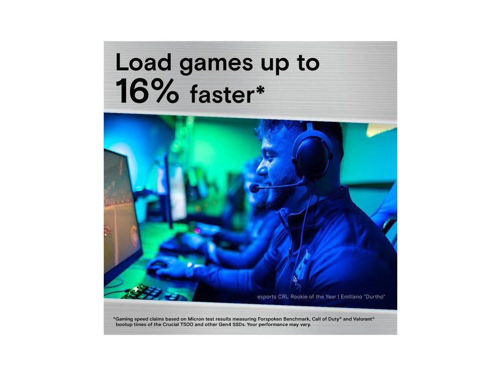 Doplňte výkon svojho systému s Crucial® T500 Gen4 NVMe® SSD.Zažite rýchlejšie hranie a rozšírte svoj kreatívny potenciál s SSD, ktorý pracuje tak rýchlo, ako potrebujete. Ťažké úlohy nie sú problémom s lepším výkonom a energetickou účinnosťou a T500 funguje s vaším notebookom alebo stolným počítačom.