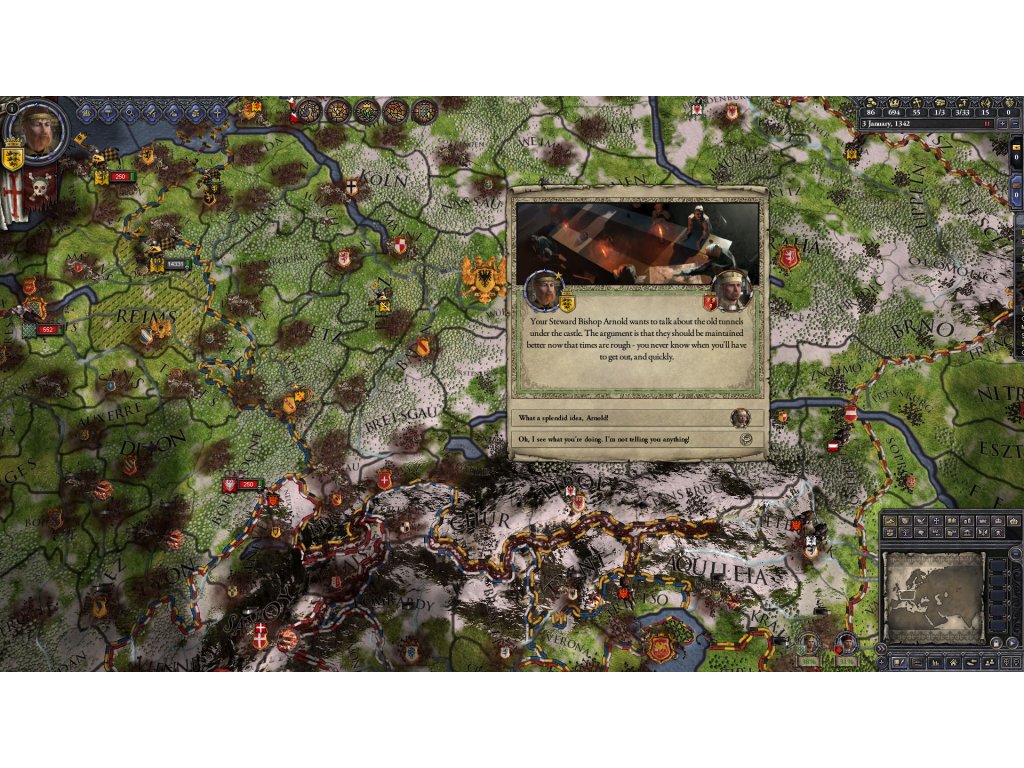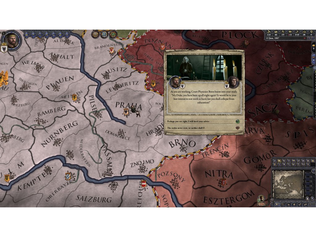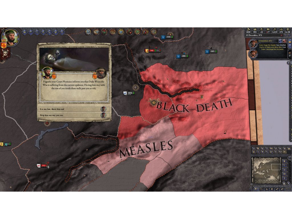 The Reaper’s Due adds a host of new mechanics centered on the Black Death and other world shaping epidemics. Lock your gates to keep the plague from infecting your court, even if it means cutting yourself off from your suffering citizens.