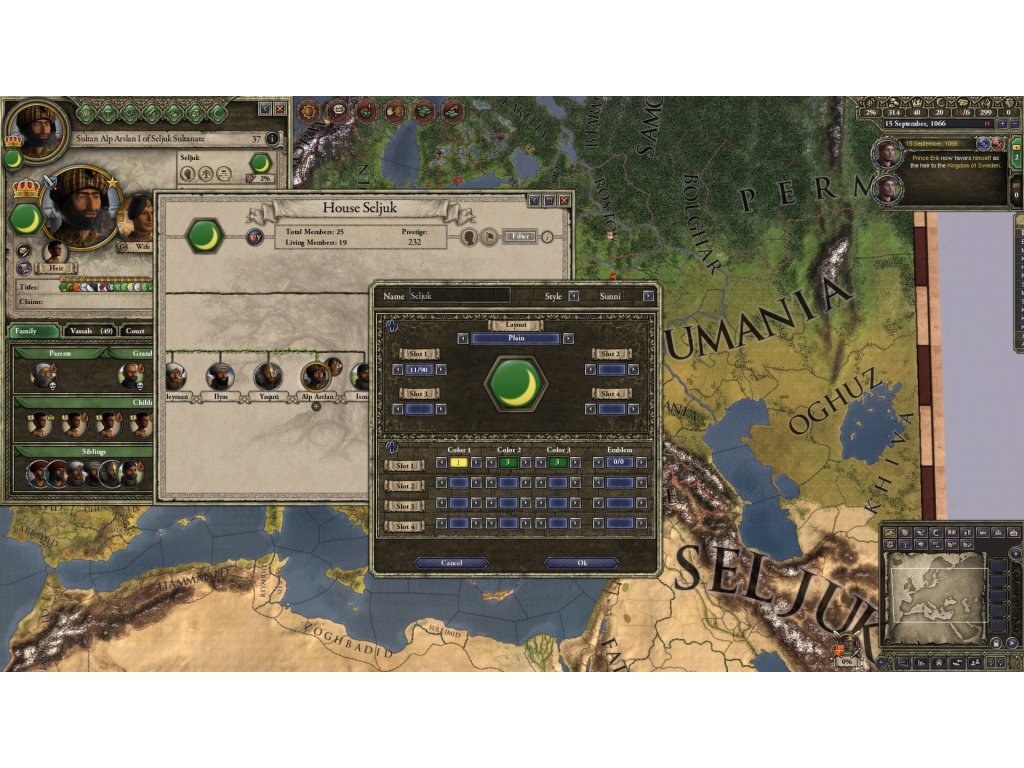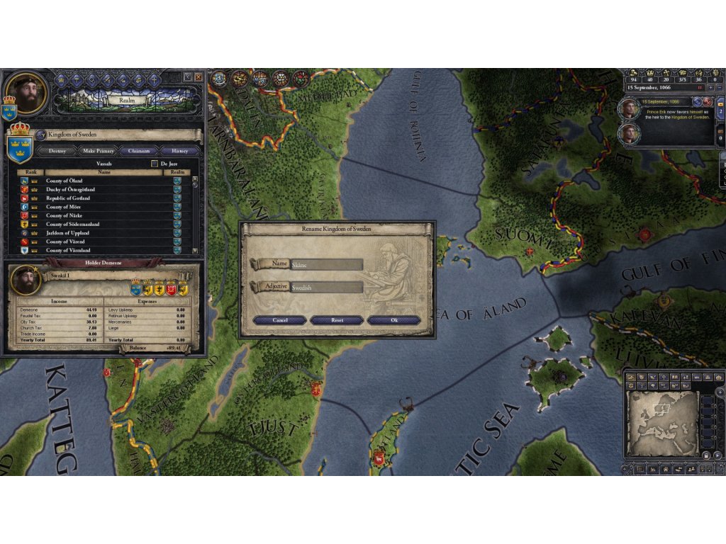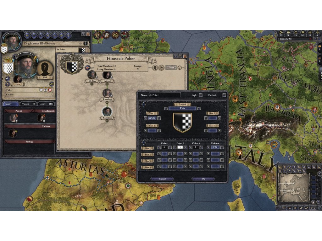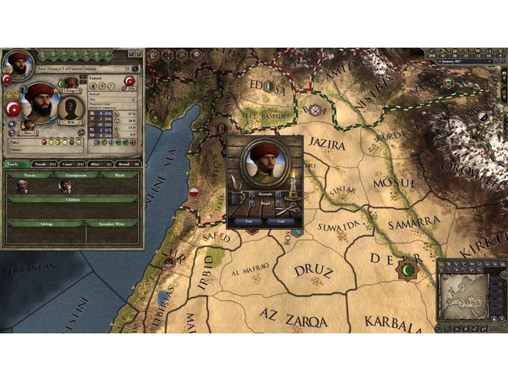 Do you think your character has an ugly beard? Trim it! (And get a haircut while you're at it...) Want to change the name of your kingdom to 'Awesomia'? Do it. Does your faithful vassal have a stupid dynasty name or shield? Customize them! The Customization Pack allows you to alter all of these things in-game. It has no effect on gameplay, but perhaps on your peace of mind.