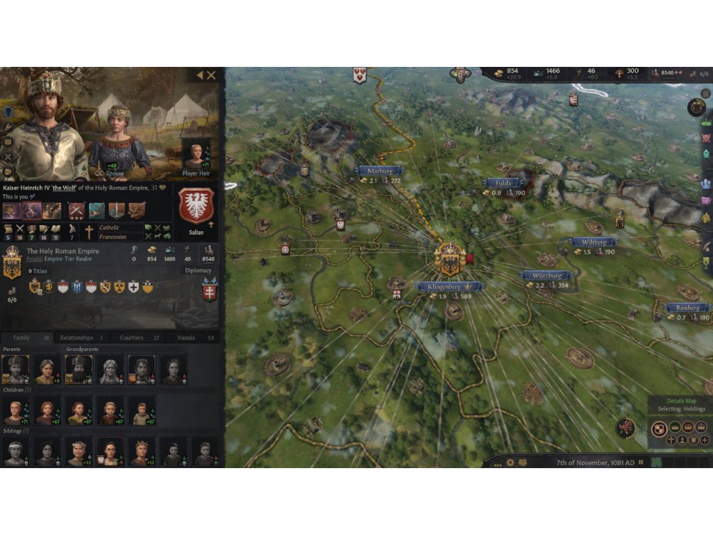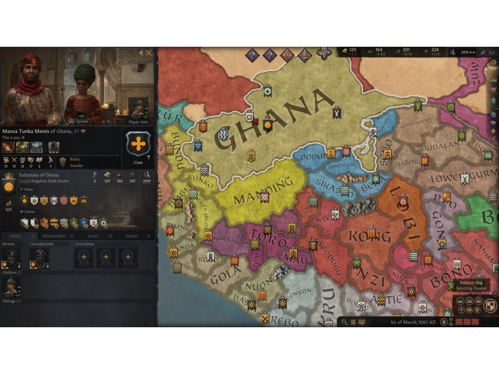 Crusader Kings III has the biggest map of the whole series, reaching from Iceland on the one side up to Central Africa. Moreover, the world will also be much more detailed and filled with more settlements and counties. Each of such counties has its own counties which can be besieged and conquered.