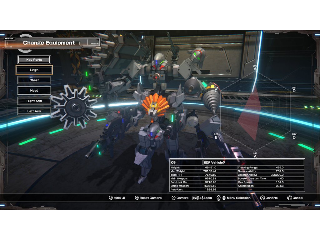 Not being restricted to bipedal builds, you can freely customize your mechs to include multiple heads, legs, and arms in whatever positions and angles you choose. Depending on the parts you use, the parameters will vary wildly, so you can build mechs with whatever abilities and fighting styles you wish!