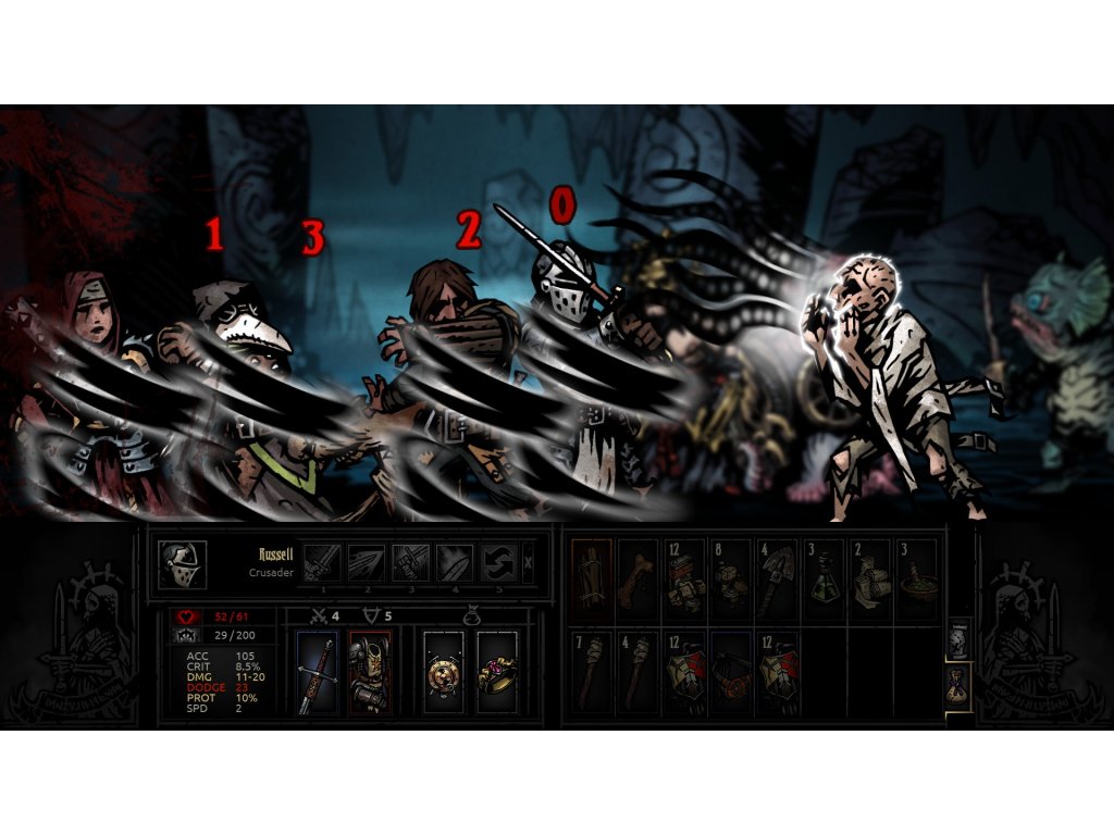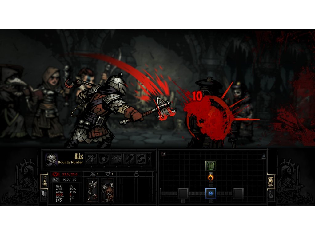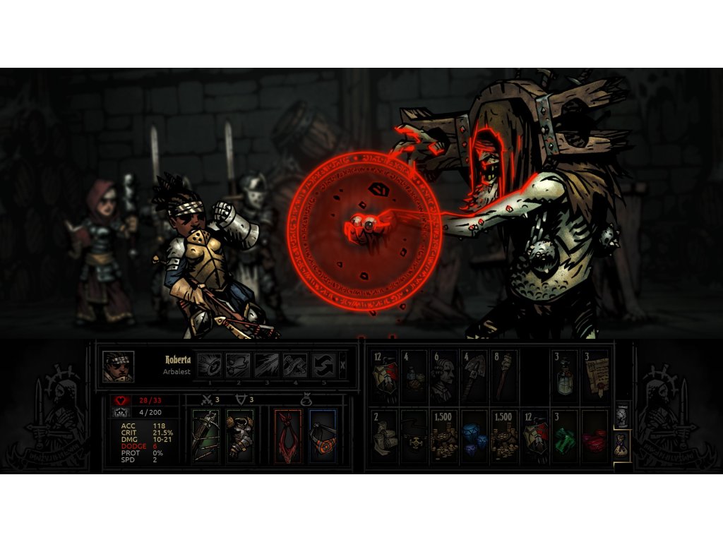 Recruit, train, and lead a team of flawed heroes through twisted forests, forgotten warrens, ruined crypts, and beyond. You'll battle not only unimaginable foes, but stress, famine, disease, and the ever-encroaching dark. Uncover strange mysteries, and pit the heroes against an array of fearsome monsters with an innovative strategic turn-based combat system.