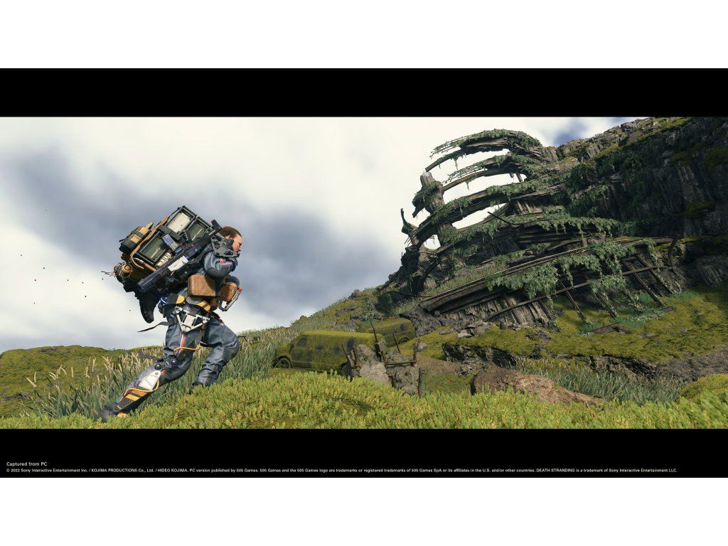 Death Stranding is a third-person perspective action game, where the player controls their character in an open world environment. The protagonist, Sam, is a deliveryman, transporting various cargo across the post-apocalyptic landscapes of the USA, earning money and reputation for his job as a deliveryman.