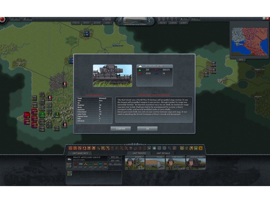 - Many different troop, equipment, and vehicle types for each side with realistic detailed statistics and artwork