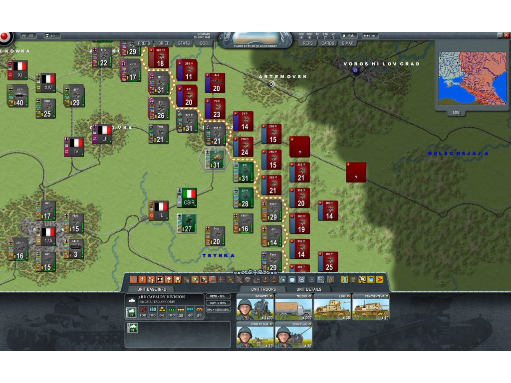 With three large campaign scenarios, additional smaller scenarios, and a 1st Panzer Army linked scenario campaign, along with a full scenario editor, Decisive Campaigns: Case Blue is sure to delight operational wargamers and fans of the Eastern Front. Don’t forget to take the battles online through the exceptional PBEM++ system, which makes finding opponents a breeze!