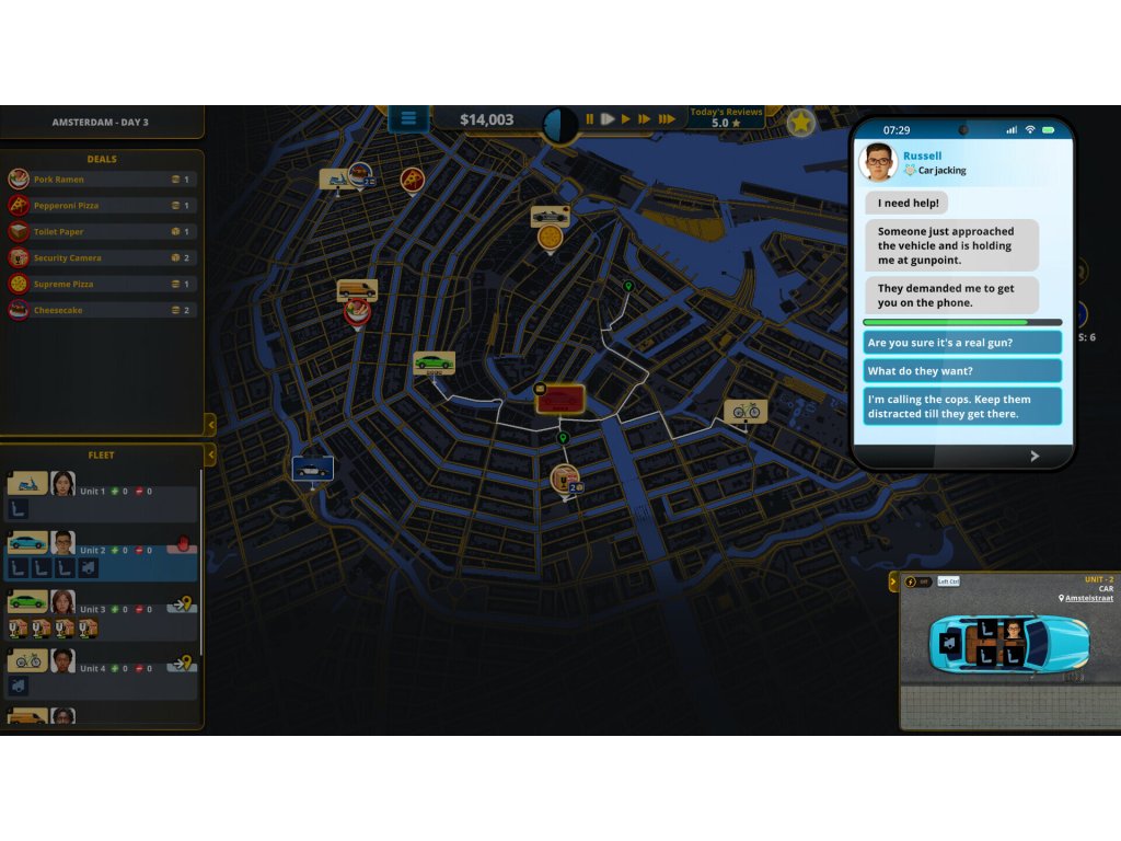 Your delivery drivers will occasionally find themselves facing difficult challenges causing them to reach out to you forhelpful advice. Make your choices wisely to avoid disaster and turn the situation into something positive. Take chances,explore multiple outcomes, and expect the unexpected with random elements that keep things fresh.